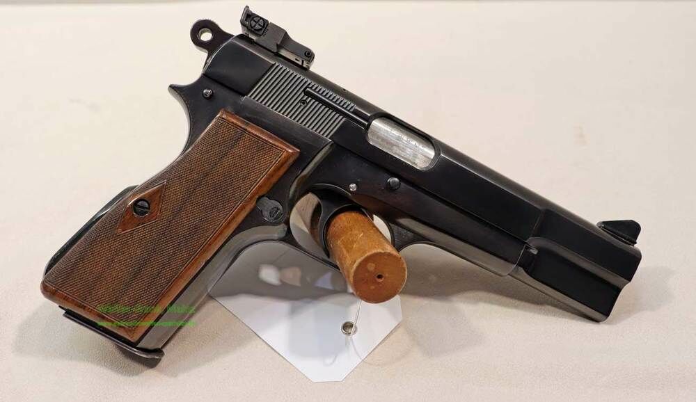 ungeschossen aus Sammlungsauflösung, in hochwertiger Büchsenmacherarbeit nach Kundenwunsch veredelt und getunt (verstellbares Kontrastvisier, Schlittenfang und Sicherungshebel verbreitert und verlängert, zusätzliche Nute auf dem Griffrücken für einen Anschlagsschaft, Nussbaumgriffschalen mit handgeschnittener feinster Fischhaut, in braunem hochwertigem Reißverschlussfutteral...ein echtes Unikat zum Sammlen und Schießen...Unikat EUR 1575,-