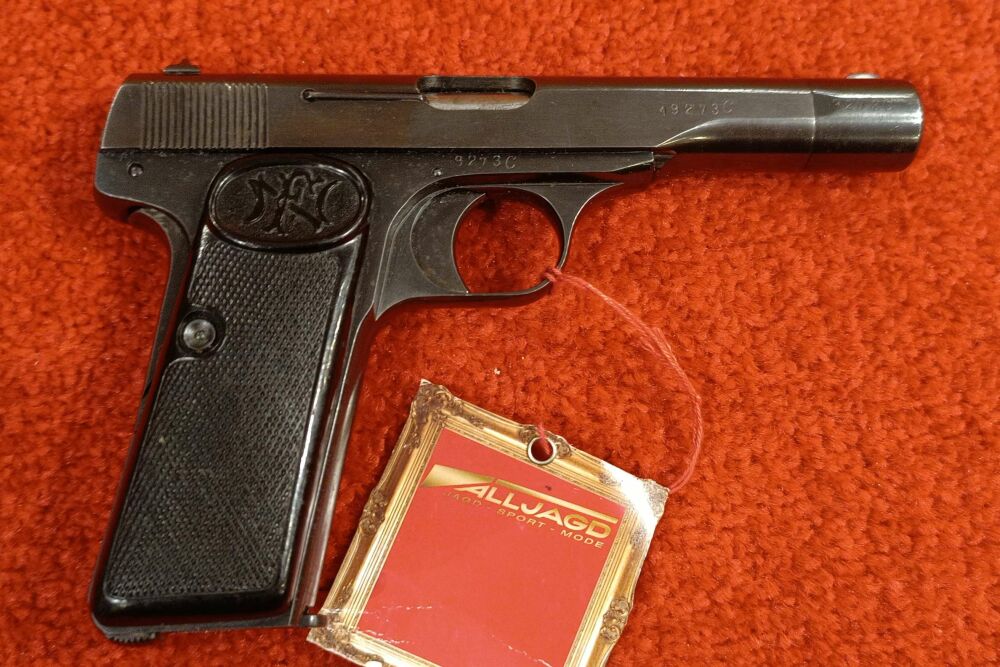 Halbautomatische Pistole FN 7,65mmBrowning+ Lauflänge 11cm+ Lauf innen Rostnarbig+ Kunststoffgriffschalen + Ein Magazin+ Kimme und Korn vorhanden ...weiterlesen