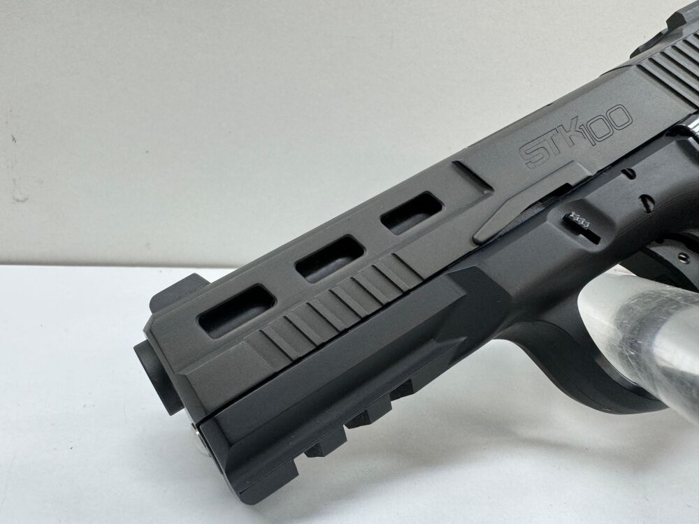 Fast lasziv präsentiert sich die Armscor / Rock Island Armory STK100 im soliden und universellen Kaliber 9mm Luger. Entwickelt wurde die Waffe analog zur Glock 17, deren Magazine auch in der Waffe verwendet werden können. Die Waffe ist aber so ganz anders als das österreichische Vorbild. Wesentlich fällt auf, dass es sich bei der STK100 um eine Ganzmetallwaffe handelt. Das speziell entwickelte und patentierte Griffstück der Pistole ist aus einem neuartigen Spezialdural, welches höchste Festigkeit und Zuverlässigkeit bietet. Dadurch gewinnt die Waffe an Gewicht und liegt angenehm im Schuss mit einer guten Vorbalance. Der geportete Verschluss lässt eine schnelle Wärmezirkulation und Wärmeabfuhr bei hohen Schussfolgen zu. Der Abzug ist angenehm und bricht für eine Strikerfirewaffe sehr weich bei ca. 1800g, was in dieser Klasse den Glock Performance Trigger toppt! Natürlich „Optics Ready“ ermöglicht Ihnen die Waffe die Montage einer Rotpunkt - Visiereinrichtung. Damit sollte jeder Schuss gelingen. Die Magazinkapazität beträgt 17+1 und natürlich liefern wir die Waffe mit einem Reservemagazin, Originalkoffer, Waffenschloss und Dokumenten. Eine tolle Pistole für alle, die mehr Gewicht im Schuss zu schätzen wissen aber auf den Komfort einer Strikerfire - Pistole nicht verzichten wollen. Wie die Glock bietet die Waffe 3 innen liegende Sicherungen.