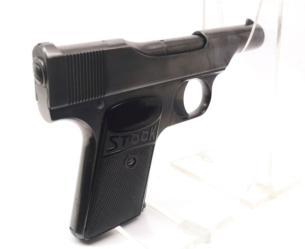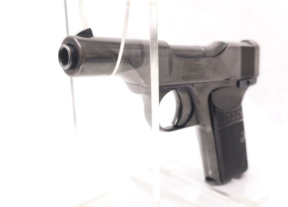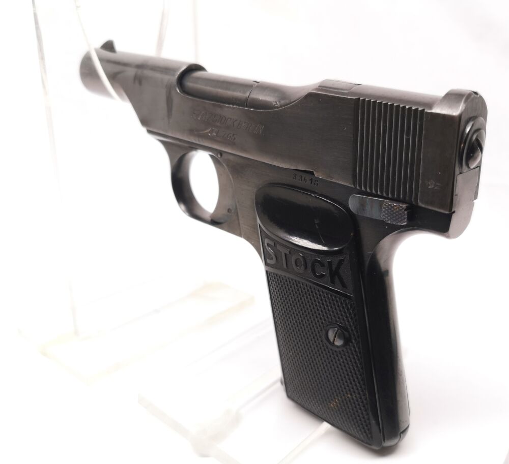 SHOP LINK N2037 Stock - Taschenpistole - Note 2 - innenliegender Hahn, Bakelitgriffschalen "Stock", schöne Sammlerwaffe# *** EWB-pflichtig *** Typ: halbautomatische Pistole Herstell... ...weiterlesen