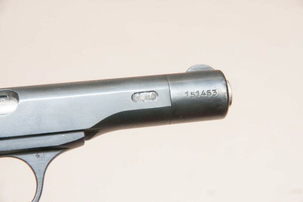 FN 10/22 guter Zustand, matte Brünierung, extra dicke Griffschalen, linke Griffschale mit Riss, Abzugsbügel it 191 gestempelt, Stempelung am Schlitten entfernt, Lauf nicht nrgl mit Hoster Zusta... ...weiterlesen