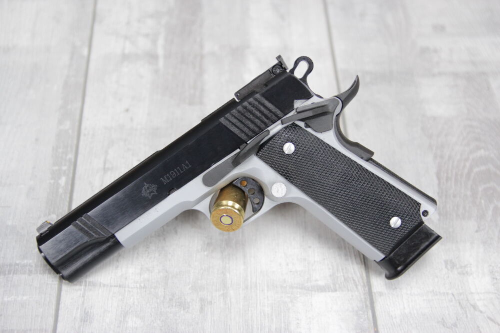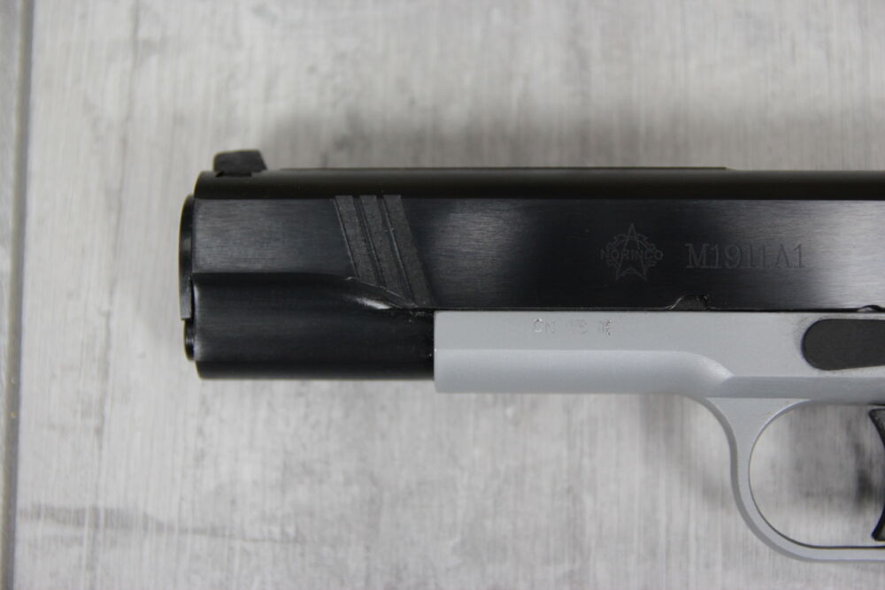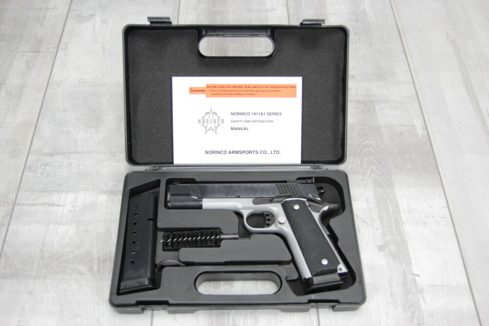 Sofort ab Lager lieferbar Zustand: Neu Hersteller: Norinco Model: 1911A1 Kaliber: .45 ACP Lauflänge: 127 mm / 5 Zoll Gewicht: 1100 g Magazinkapazität: 8 Finish: Verschluss brü... ...weiterlesen