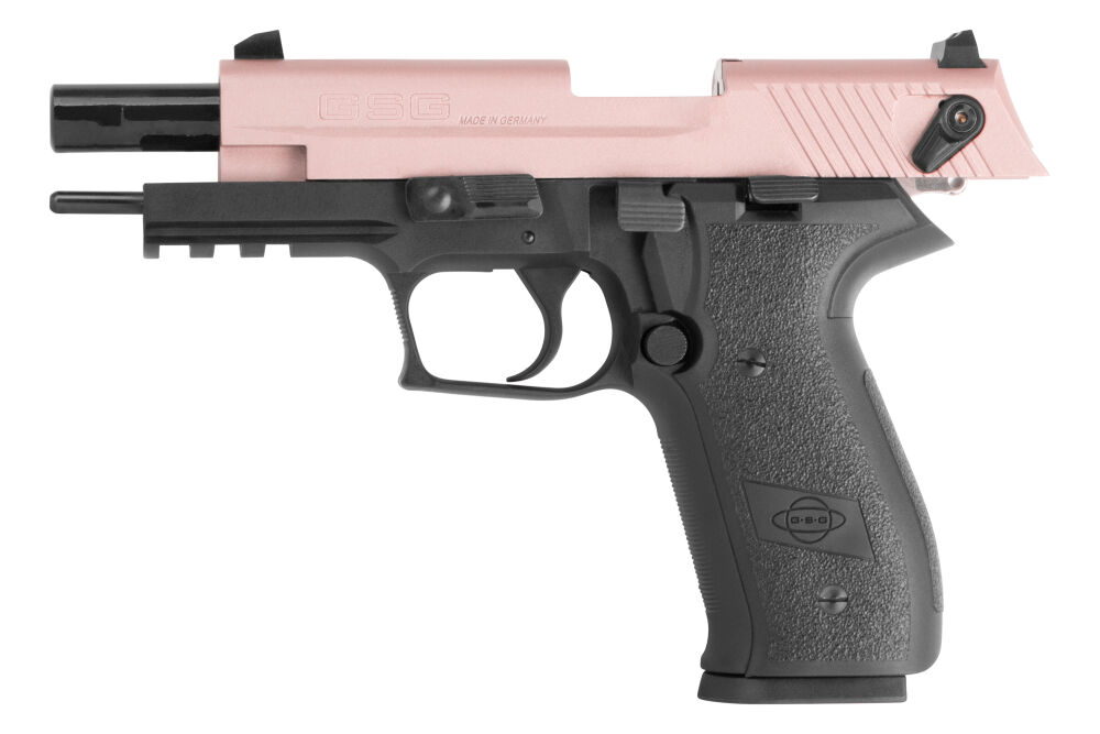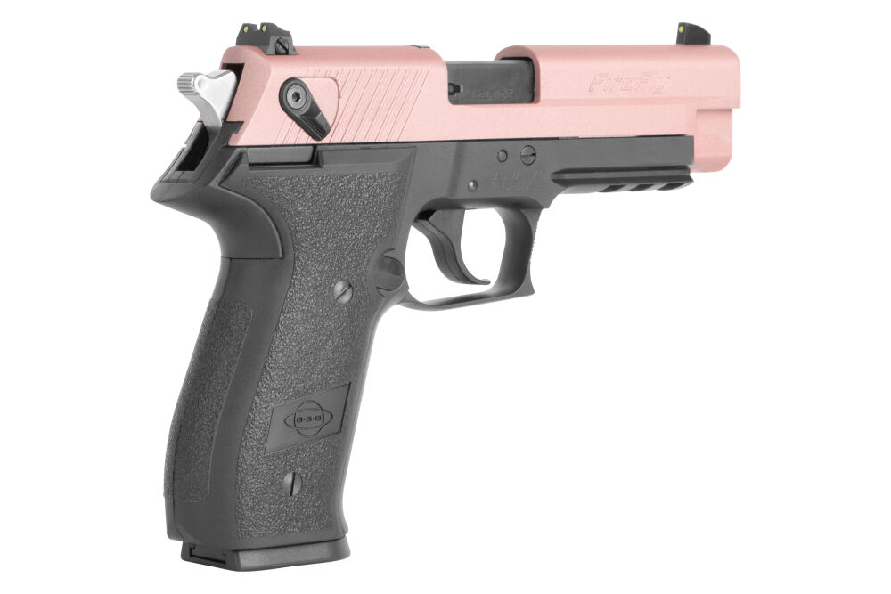 Die GSG Firefly ist eine um 10% verkleinerte Selbstladepistole im Design einer SIG SAUER P226 im Kaliber .22lr mit gleichem System und gleichen Sicherheitsfunktionen. Lediglich im Verschluss unterscheidet Sie sich von ihrer großen Schwester, hier arbeitet ein Masseverschluss (Blowback-System).