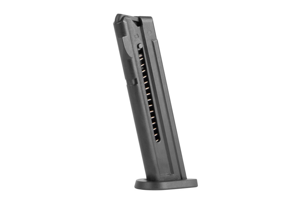 Ausgestattet mit einem ergonomischen Polymer Griffstück und schwarzen Kunststoff Griffschalen, Single – und Double-Action Abzug, Picatinny-Schiene zur Anbringung von Laser oder Brückenmontage, Metallmagazin, beidseitiger Flügelsicherung, Entspannhebel und einstellbarer Visierung.