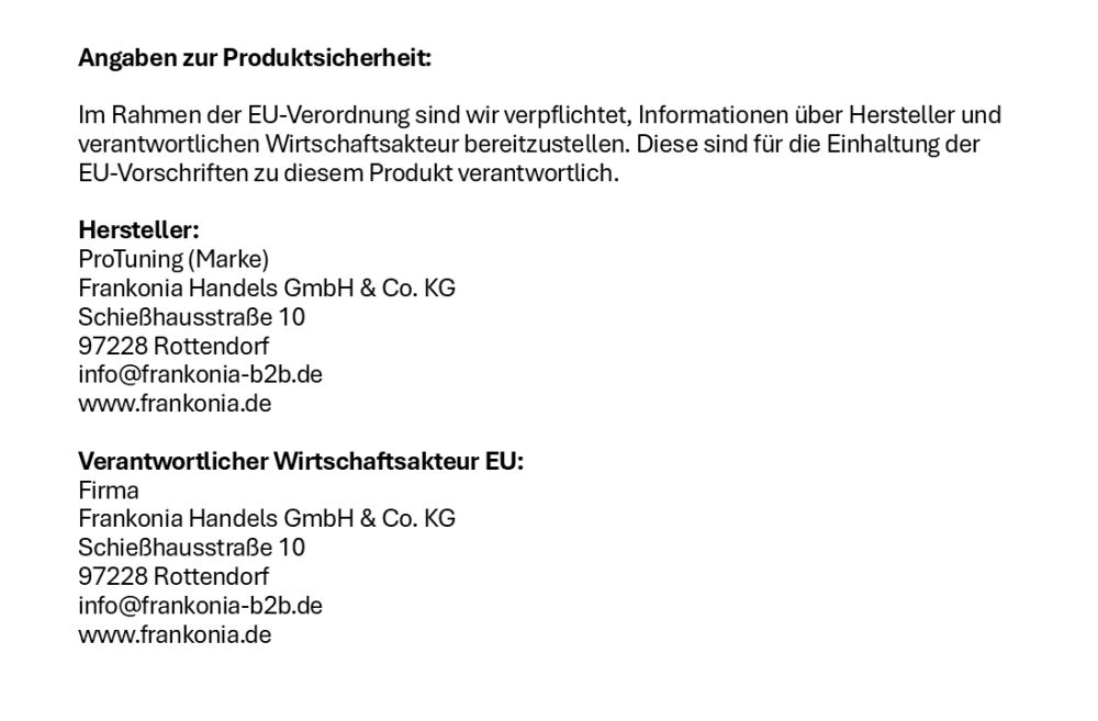 Im Rahmen der EU-Verordnung sind wir verpflichtet, Informationen über Hersteller und verantwortlichen Wirtschaftsakteur bereitzustellen. Diese sind für die Einhaltung der EU-Vorschriften zu diesem Produkt verantwortlich.