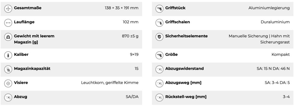 - Magazinkapazität: 15 Patronen