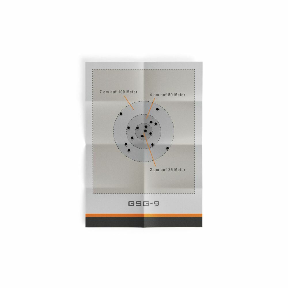 Die GSG-9 zeichnet sich durch ihre außergewöhnliche Schießpräzision aus. Auf einer Distanz von 25 Metern liegt der Streukreis im Mittel bei nur 2 cm, was auf eine hervorragende Zielgenauigkeit hinweist. Auf 50 Metern weitet sich der Streukreis minimal auf 4 cm aus, während auf 100 Metern die Streuung mit 7 cm immer noch beeindruckend gering bleibt.