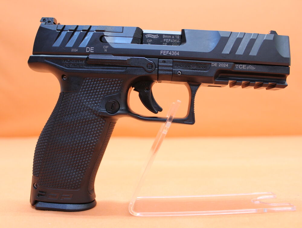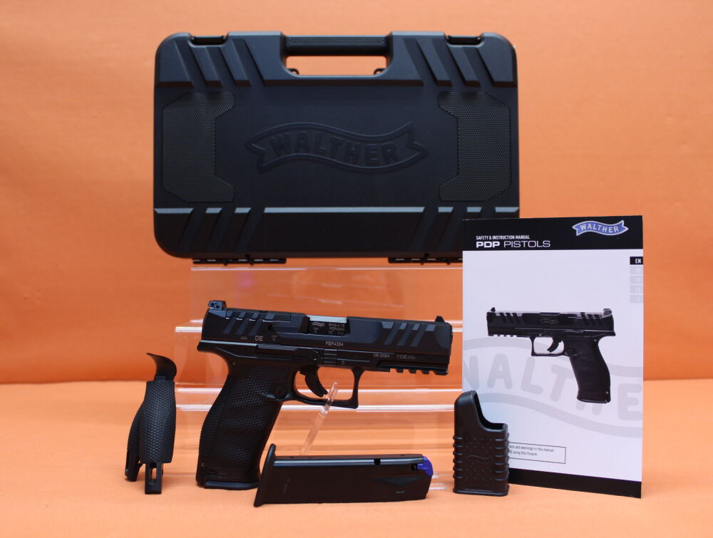 Ha.Pistole 9mmLuger Walther PDP: Full Size 4,5"/115mm Polygonauf, einstellbare 3-Dot Polymer-Visierung, Verschluss mit Schnittstelle für Leuchtpunktvisiere, Polymer-Griffstück mit Zubehörschiene... ...weiterlesen