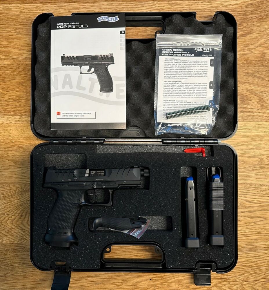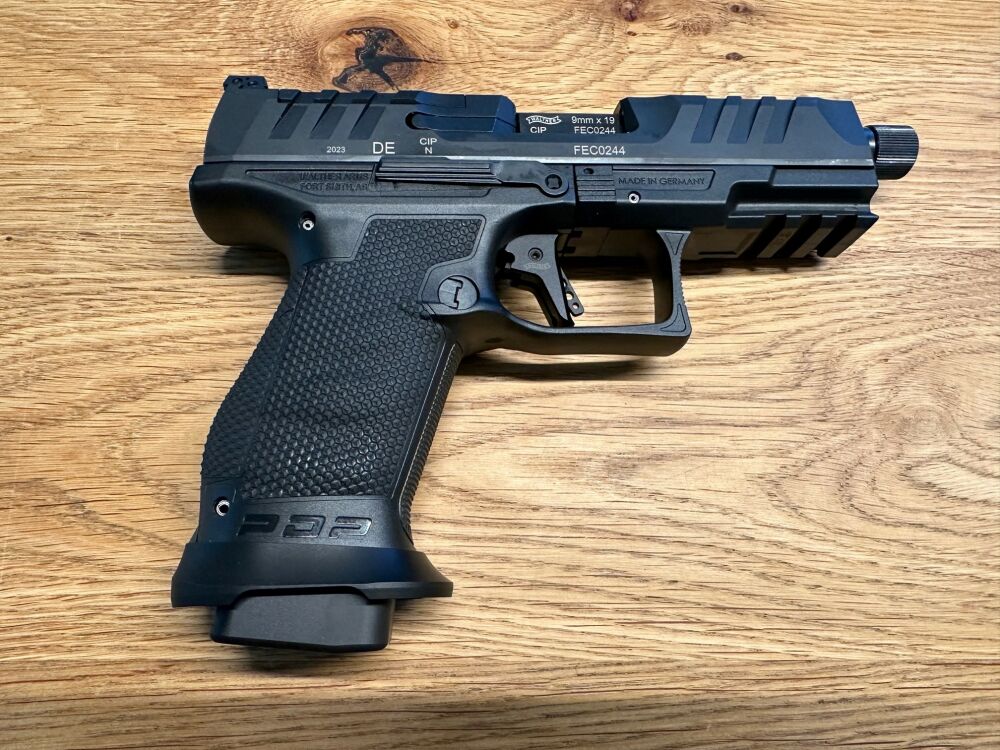 Die Walther PDP Compact V2 mit neuer Optik-Montageplattform. Die Pistole besticht durch ihr markantes Äußeres. Tiefe Durchladerillen finden sich sowohl vorne als auch hinten am Verschluss. Somit bl... ...weiterlesen