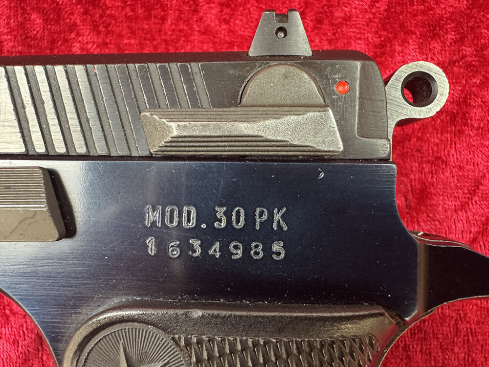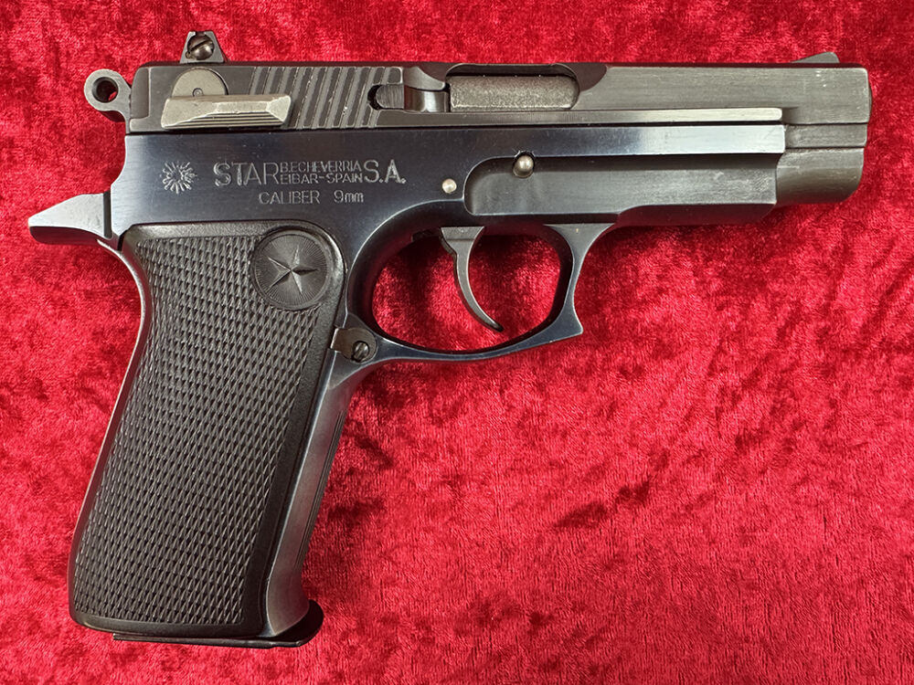 Die Star 30PK ist eine spanische Kurzwaffe, die von der Firma Star Bonivacio Echevería S.A. hergestellt wurde. Diese Waffe gehört zur Familie der Star-Pistolen, die für ihre robuste Bauweise uns zuverlässige Funktion bekannt sind. Das Kaliber ist mit 9 mm Luger eines der am weitesten verbreiteten Kaliber weltweit. Ihre Magazinkapazität beträgt 10 Schuß. Bei dieser Waffe handelt es sich um eine kaum beschossene Jägerwaffe, die fast ausschließlich im Schrank lag. Im Preis beinhaltet ist ein Leder-Gürtelholster sowie ein zweites Magazin. Die Star wurde in Eibar, Spanien beschossen.