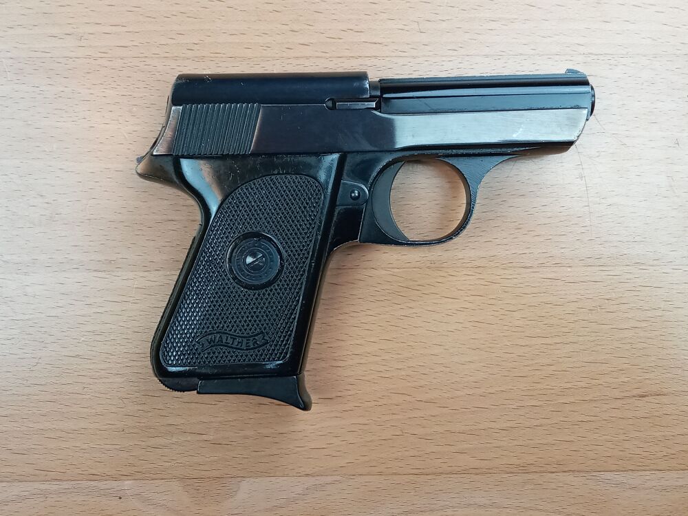 Walther Model TP Kaliber 6,35 Browning Lauflänge 65mm Magazinkapazität 7 Schuss Baujahr 1969 Diese Waffe ist, gegen 25,- Euro Mehrpreis, auch als Teilesatz lieferbar. Magazin, Griffschalen ... ...weiterlesen