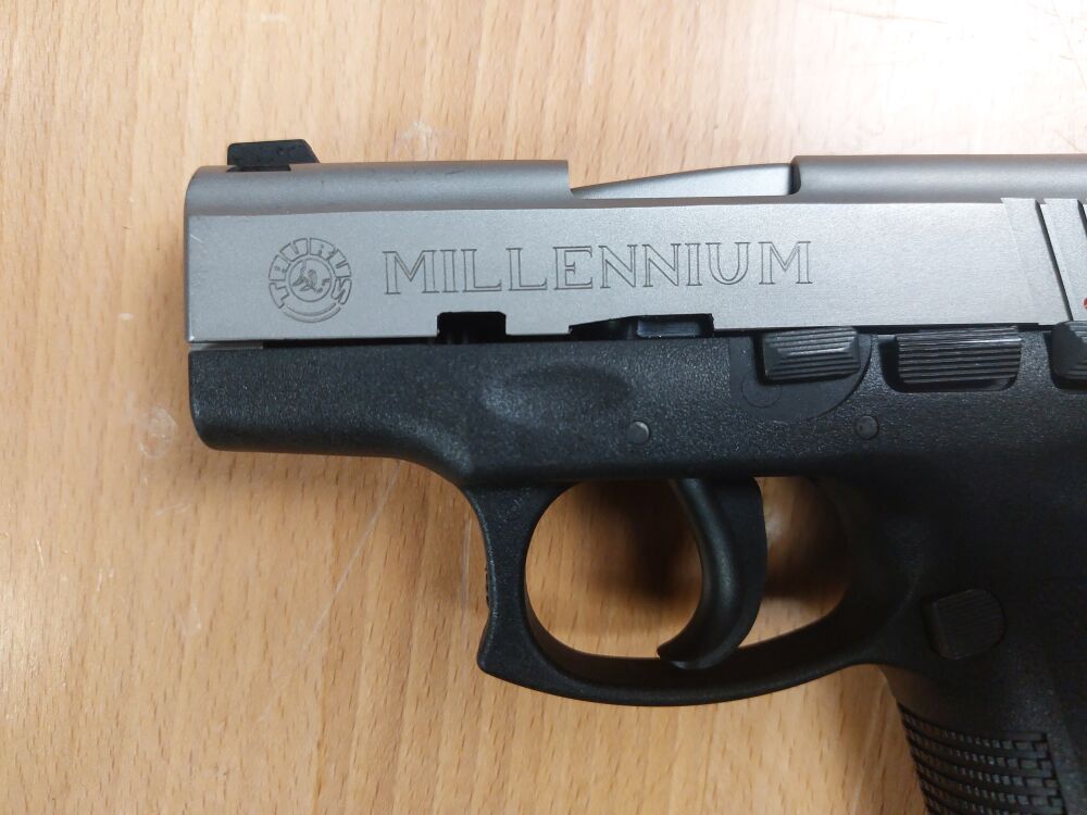 Pistole Taurus , Brazil Modell PT 132 PRC MILLENNIUM Kaliber 7,65 Browning Beschuss 2014 Kunststoffgriffstück Stainless Schlitten 3,25 Zoll Lauf DAO AbZug 10_Schuss Magazin Origina... ...weiterlesen