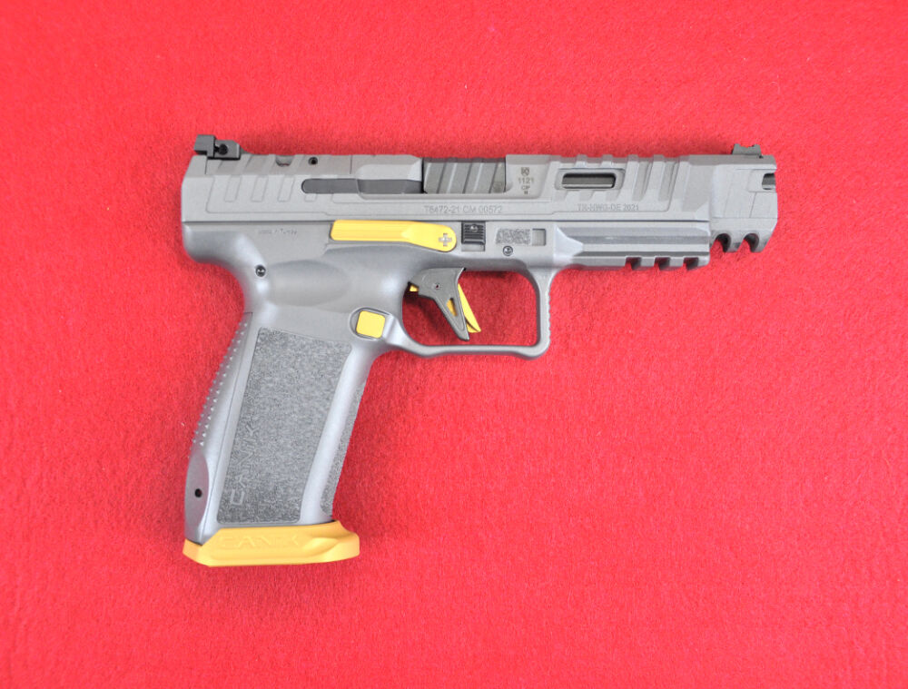 Kein anderer Name könnte das Design so klar wiedergeben. Ein Modell, das alle anderen Pistolen herausfordern kann. Mit Merkmalen, wie z.B. einem verbesserten Griffsporn, einer aggressiven vorderen Schlittenkontur, einem tieferen Abzugsbügelwinkel, der neue Holster-Fit-and-Lock-Funktion (HFL) und dem neuen Magwell-Rahmendesign. Die verstellbare Kimme und das Fiberglas-Visier verbessern die Zielerfassung entscheidend. Die SFx RIVAL®️ verfügt über einen modularen Rahmen, der eine einfache Demontage der Waffe ermöglicht. Durch dieses Design kann der Benutzer seine Pistole bis in die kleinsten Teile zerlegen und dann nur mit dem CANiK®️-Punch-Werkzeug wieder zusammenbauen. CANiK®️ setzt weiterhin die weltweit fortschrittlichste Technologie im Abzugsdesign ein, um den diamantgeschliffenen, um 90° abgewinkeltenn Aluminiumabzug der SFx RIVAL®️ zu entwickeln, der zusammen mit dem verkürzten Vorspann- und Rückstellweg die Geschwindigkeit und Genauigkeit erhöht. Neben all diesen technischen Verbesserungen wurden bei der Entwicklung der RIVAL®️ auch ästhetische Gesichtspunkte berücksichtigt: Mit der einzigartigen Cerakote Beschichtungsfarbe CANiK®️ Rival Grey und H-122 Gold auf Abzug, Magazinknopf, Magazinbodenplatte, Magazintrichter und Verschlussfanghebel ist diese Waffe ein echter Hingucker auf jedem Schießstand.