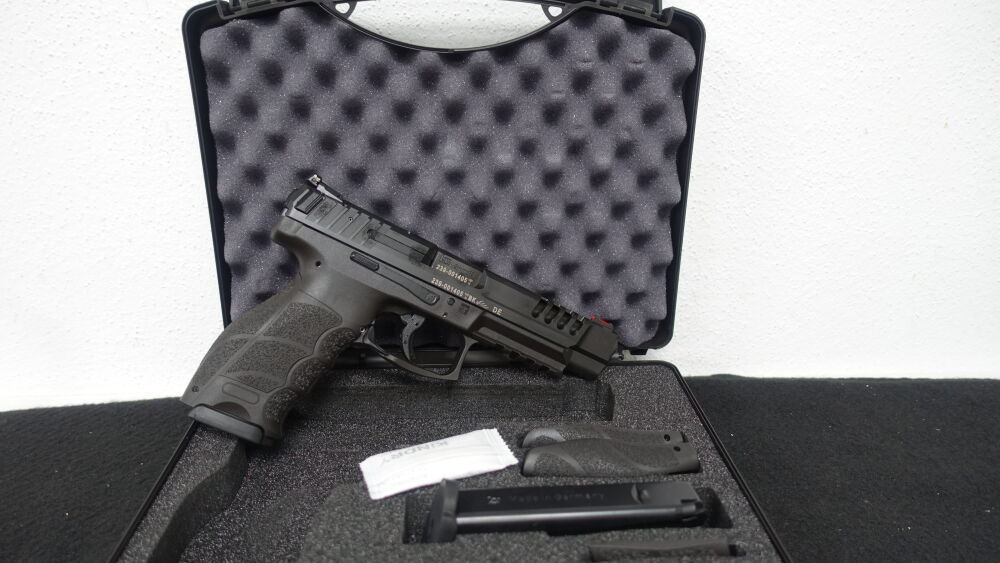 Heckler & Koch SFP9L-SF Kaliber: 9mm Luger Lauflänge: 127mm Gesamtlänge: 209mm Gewicht: 770g Magazinkapazität: 15 Schuss ...weiterlesen