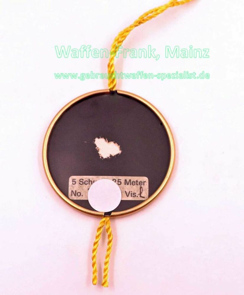 selten geschossen, aus Sammlungsauflösung, bereits mit neuem verstellbarem Abzug und zusätzlicher Sicherung, mit ausgesuchter Werksschussleistung, siehe Schussbild, mit orthopädischem punsiertem Nussbaumgriff Gr. M-L, noch im Originalkarton, (lediglich Schaumstoff wurde wegen chemischer Alterung entfernt)