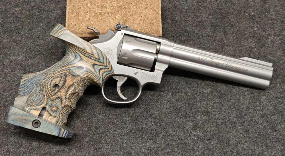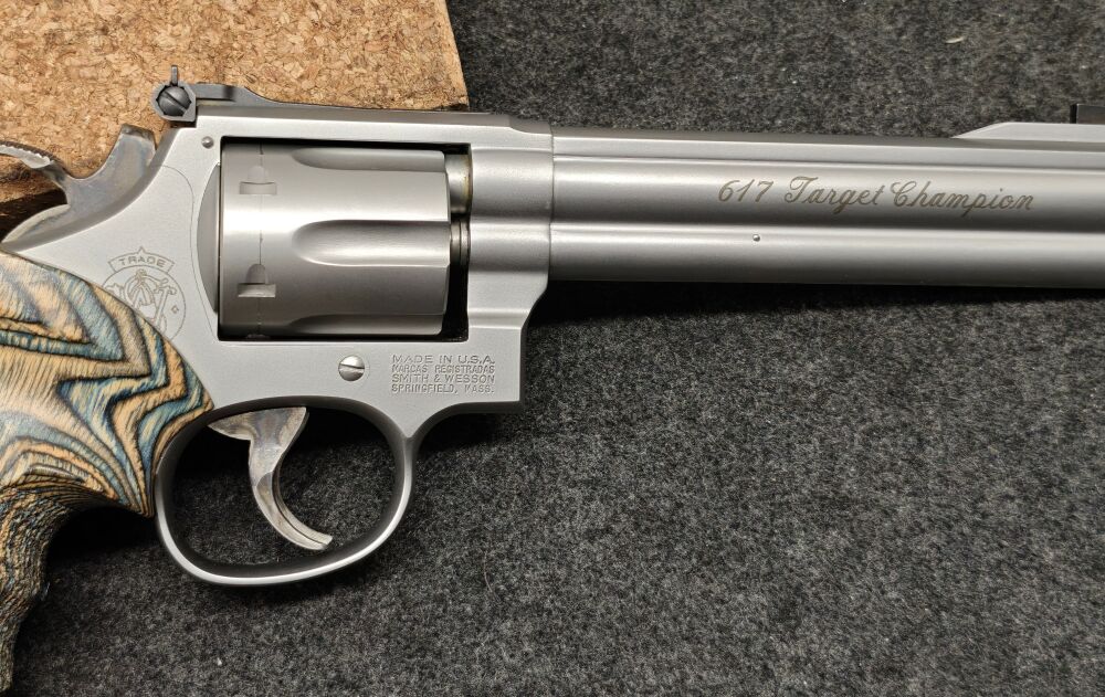 Smith & Wesson Mod. 617-1 Kaliber: .22lr Kleinkaliber Matchrevolver Sehr guter, fast neuwertiger Zustand. 6-Zoll Lauf Balkenkorn und Mikrometervisier Breiter Abzug und Hahnsporn Sehr gut... ...weiterlesen
