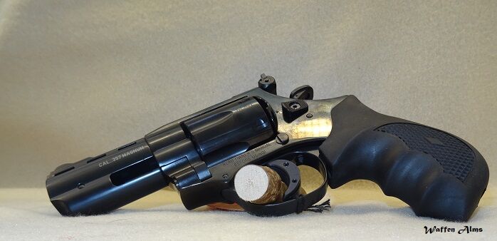 Double Action Revolver im Kal. .357 Magnum in sehr guter Qualität und mit einem solide verarbeiteten Stahlrahmen, äußerst robust und zuverlässig. Die Griffschalen sind aus weichem Kunststoff für eine sichere Handlage - egal ob trockene oder feuchte Witterung. Dieser Revolver ist in verschiedenen Lauflängen und mit feststehender oder mit verstellbarer Target-Visierung erhältlich.