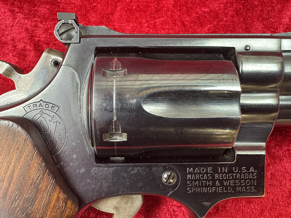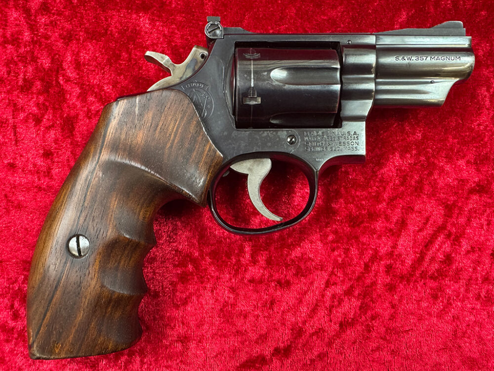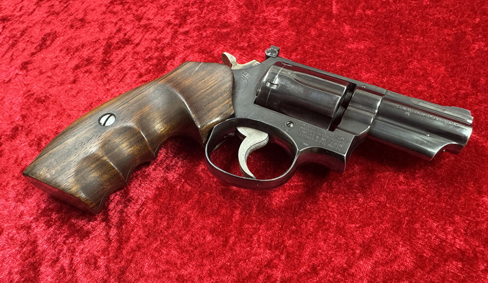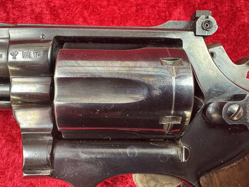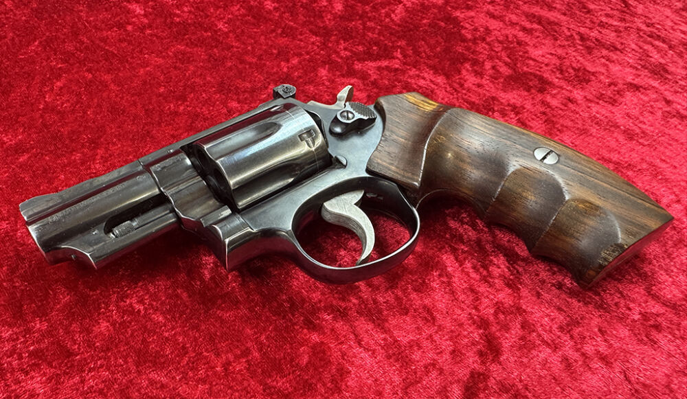 Die Smith & Wesson Model 19-3 ist ein klassischer Revolver im Kaliber.357 Magnum, der für sein Präzision, Qualität und Vielseitigkeit bekannt ist. Es gehört zur berühmten K-Frame-Serie von Smith & Wesson, die ursprünglich für das Kaliber .38 Special entwickelt wurde, jedoch für die stärkere .357 Magnum angepasst wurde. Das Modell 19 wurde erstmals 1957 eingeführt, nachdem es in Zusammenarbeit mit dem legendären Schützen und Ballistiker Bill Jordan entwickelt wurde. Es wurde als Combat Magnum bekannt. Die Idee hinter dem Model 19 war, einen leichten, tragbaren Revolver mit der Leistung des .357 Magnum zu schaffen, der aber auch die Möglichkeit bietet, die sanftere .38 Special-Munition zu verschießen. Die 3. Version wurde von 1967 bis 1976 hergestellt und ist eine der beliebtesten Varianten der Model 19 Serie. Sie weist Verbesserungen in der Verarbeitung und kleinere Konstruktionsänderungen gegenüber den Vorgängermodellen auf. Die Trommelkapazität beträgt 6 Patronen. Die S&W wurde 1974 in Mellrichstadt beschossen und ist mit einem Nußbaumholzgriff ausgestattet. Darüber hinaus beinhaltet unser Angebot auch einen zusätzlichen Pachmayr Tripper-Griff.