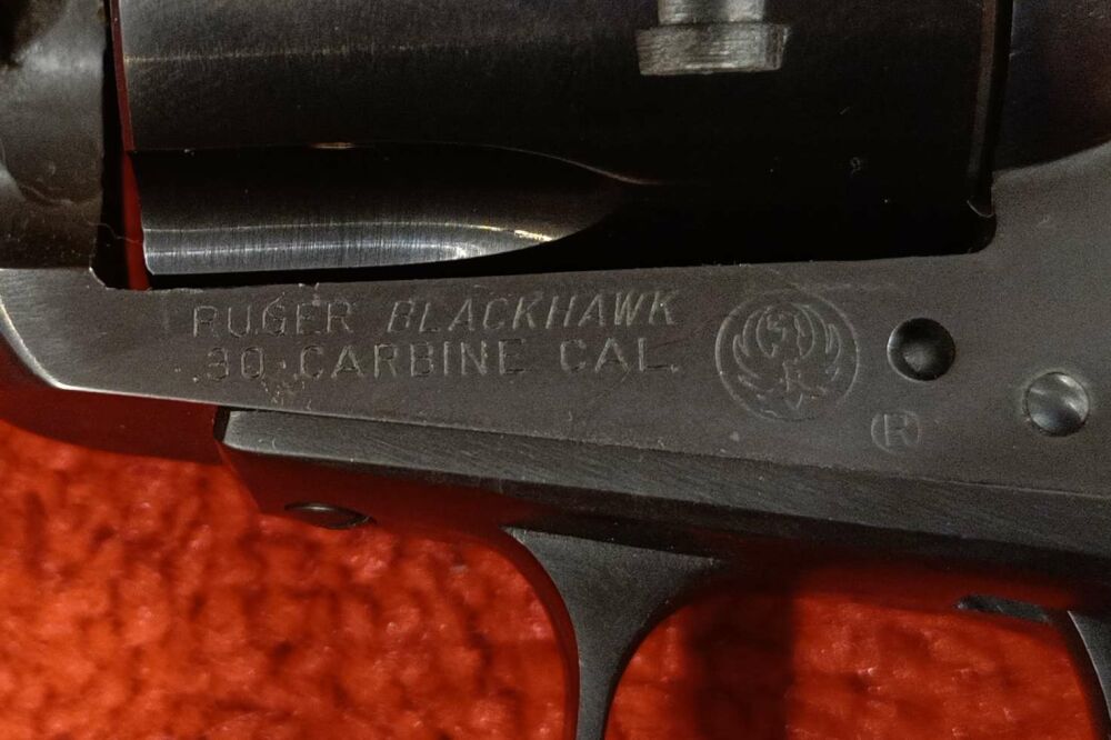 Revolver Ruger .30Carbine+ Lauflänge 19cm+ Lauf hat innen Spuren+ Holzgriffschalen+ Sechs Schuss Trommel+ Ladeklappe + Kimme und Korn ...weiterlesen