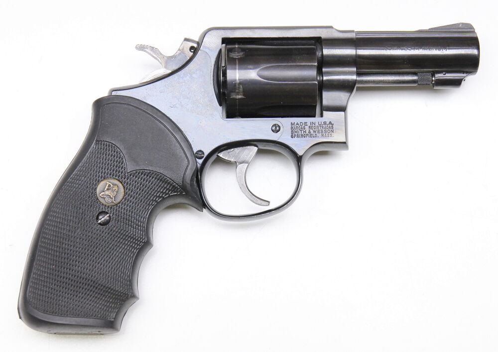 Revolver Smith & Wesson Mod. 13-3 Kal. 357 Mag. 3 Zoll Lauflänge, Pachmayr Gummi Griff für Rückstoßverringerung, aufgrund der geringen Grösse einer der besten Revolver für den Jäger, wenig geführte und gepflegte Tresorwaffe. Ko. Punzet, Beschuss: aktueller Beschuss ja, SN: AYE1726 Preis 530€