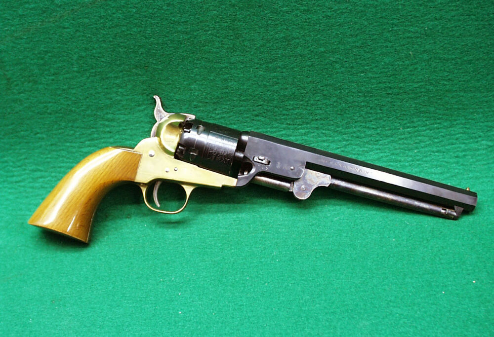 Perkussions Revolver Colt 1851 Navy Kal.44 Perk Hersteller: Euroarms Zustand: sehr gut Länge: ca.34cm Lauflänge: ca. 19cm Gewicht: 1,17kg Bei Interesse&weiteren Fragen kö... ...weiterlesen