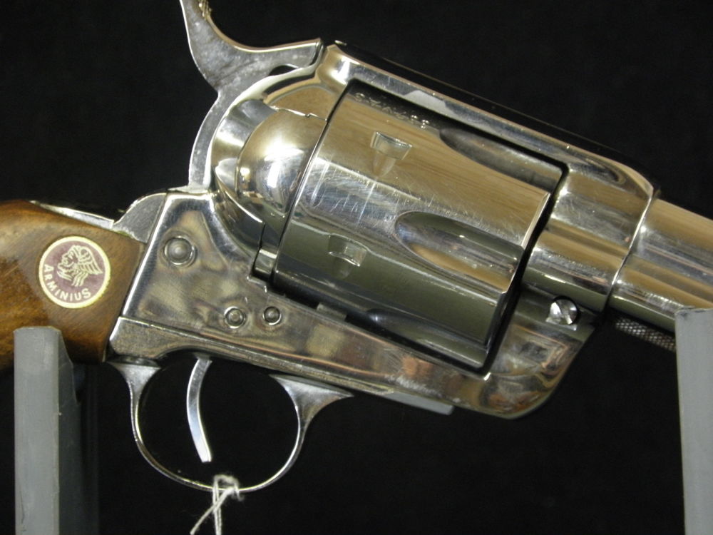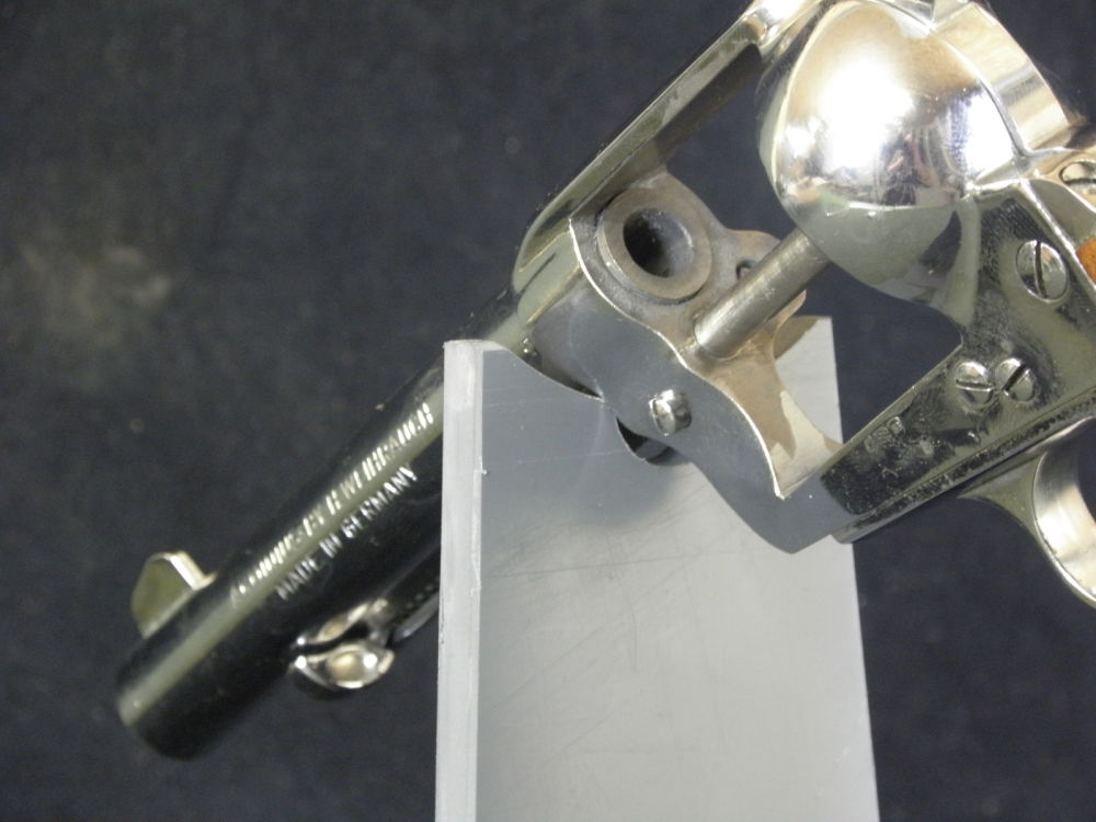 hochglanz Finish vercromt od,vernickelt. 51/2 " LL. Vermutlich nur pobehalber geschossen. Sehr guter vermutl. überarbeiteter Abzug. Single Action Revolver. ...weiterlesen