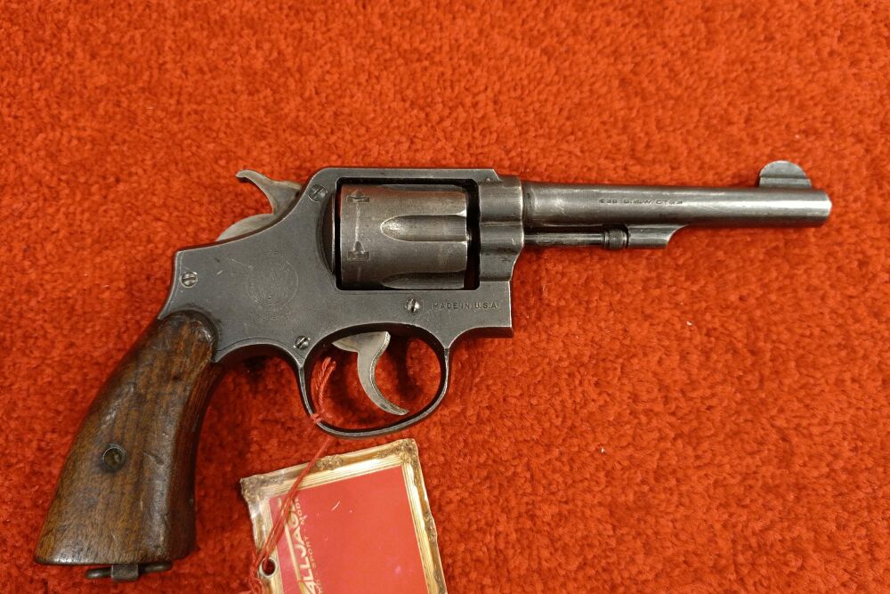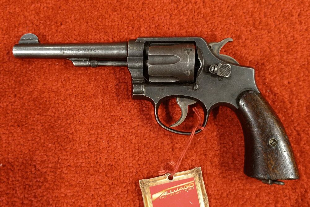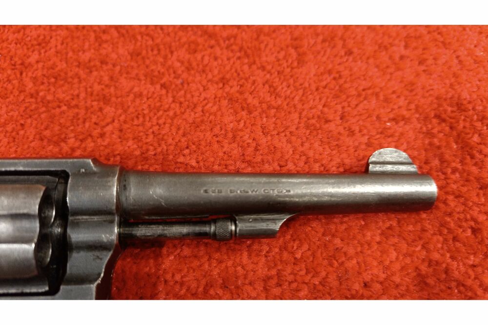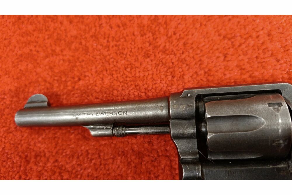 Revolver Smith & Wesson .38S&W+ Lauflänge 12,5cm+ Lauf innen guter Zustand ( Leichte Spuren )+ Holzgriffschalen + 6 Schuss Trommel+ Kimme und Korn+ Ausschwenkbare Trommel ...weiterlesen