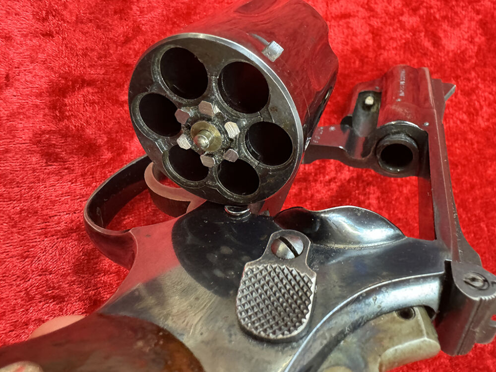 Dieser Smith & Wesson Revolver Model 19-3 wurde vom San Francisco Police Department 1973 erworben und nach Ablauf der Nutzungsdauer von der Firma Frankonia importiert. Sie wurde im Beschussamt Melrichstadt 1998 beschossen. Die Waffe wurde wohl nur selten getragen und fast nie geschossen. Die orignalen Griffschalen haben mittlere Gebrauchsspuren. Das Kaliber und die Lauflänge von 6,25 cm (2,5 Zoll) machen dieses Unikat perfekt für die Nachsuche und den Jagdschutz.
