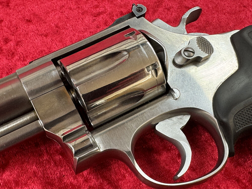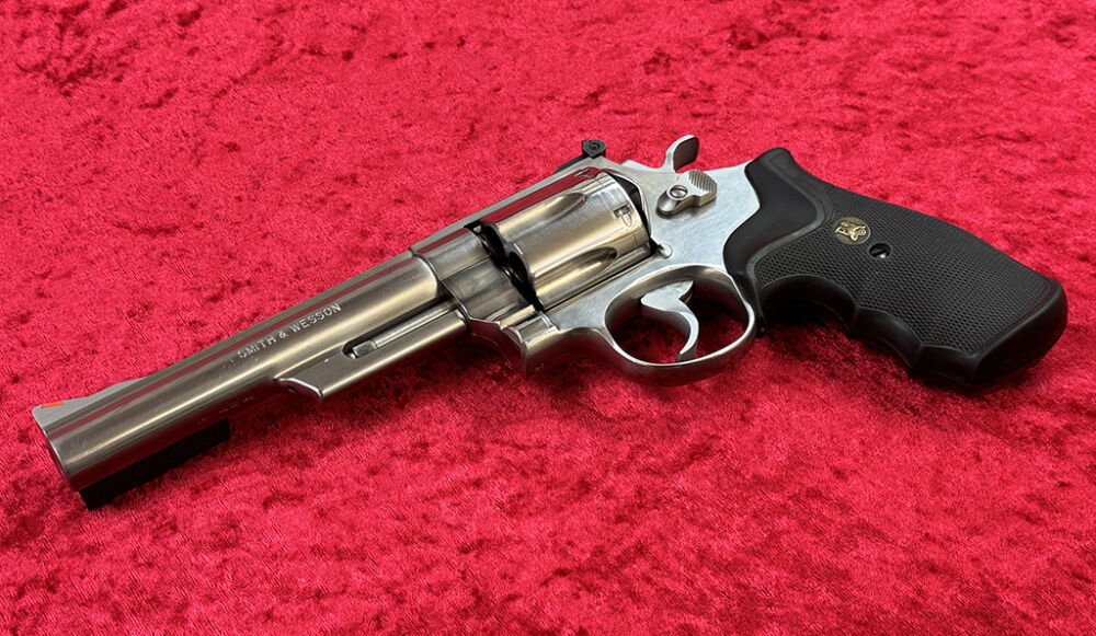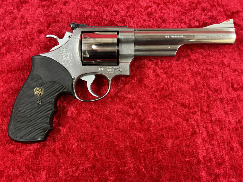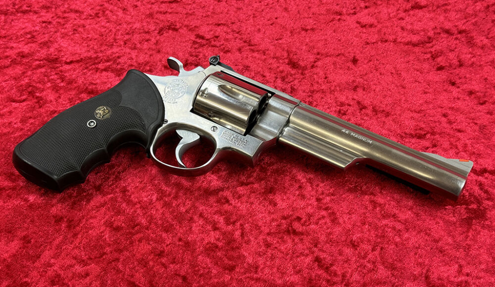„Dies ist eine 44er Magnum. Die stärkste Handfeuerwaffe der Welt.“ Dieser Nachfolger von Inspektor Callahan berühmten Revolver Model 29 kommt von einem Sportschützen der leider verstorben ist. Die Waffe wurde 1989 produziert und von der Firma Wischo über Belgien mit belgischem Beschußzeichen importiert. Der 629-3 SA/DA Revolver hat den klassischen 6 Zoll Lauf, verfügt über eine geflutete 6-Schuß Trommel und hat ein verstellbares Visier. Der Griff ist ein Pachmayr Gripper aus Gummi. Mit diesem Revolver und dem Kaliber ist jede Nachsuche kein Problem mehr. „Nun fragst Du Dich, ob heute Dein Glückstag ist?“