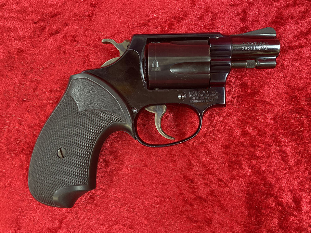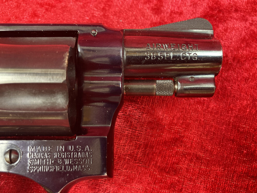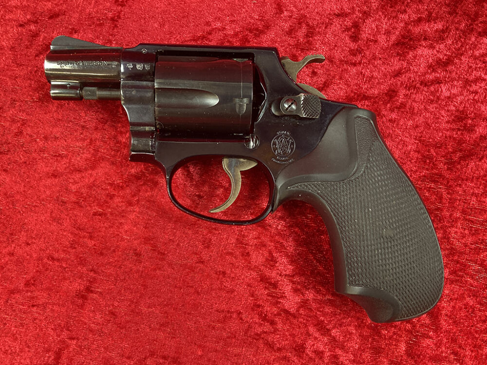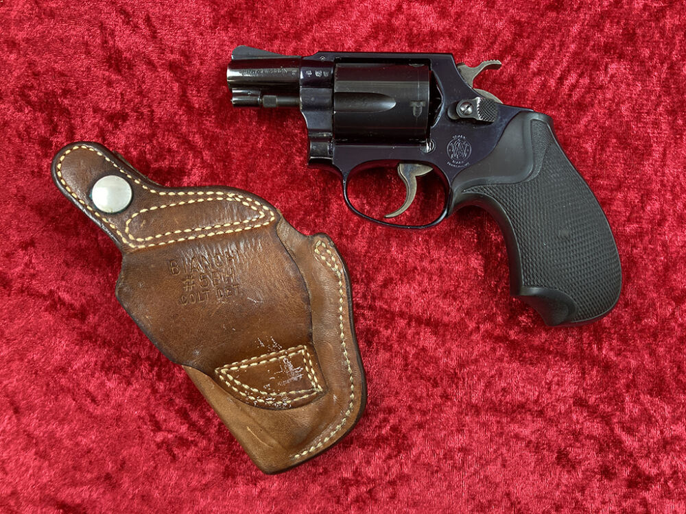 Dieser Revolver stammt von einem Jäger der sein Hobby aufgegeben hat. Die Waffe hat wie bei so vielen Jägern nur im Schrank gelegen. Es handelt sich hier um das Model 37 Airweight mit 5-Schuß Trommel und J-Rahmen. Sie hat einen Pachmayr Compac Griff und wurde 1968 im Beschußamt München beschossen. Mit dabei ist auch ein wertiges Bianchi Lederholster.
