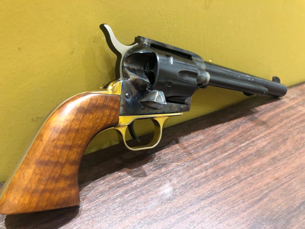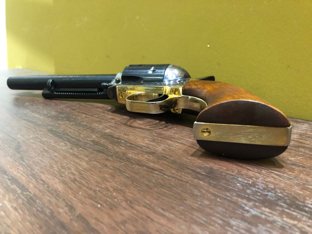 Die Waffe ist ein detailgetreuer Nachbau des klassischen Colt SAA. Die Trommel kann seitlich