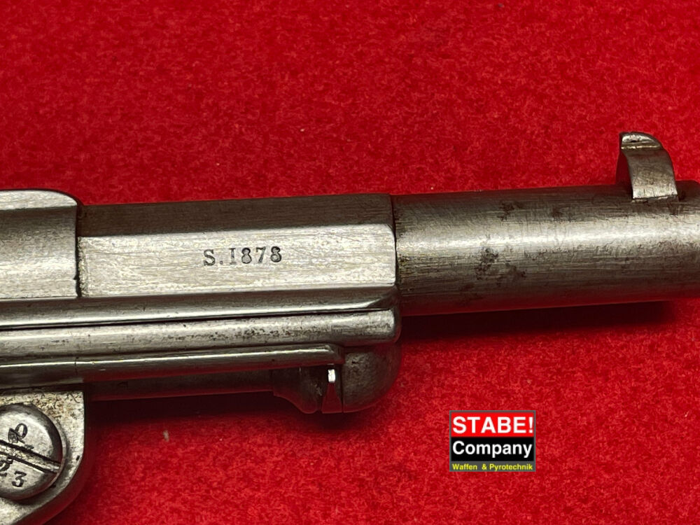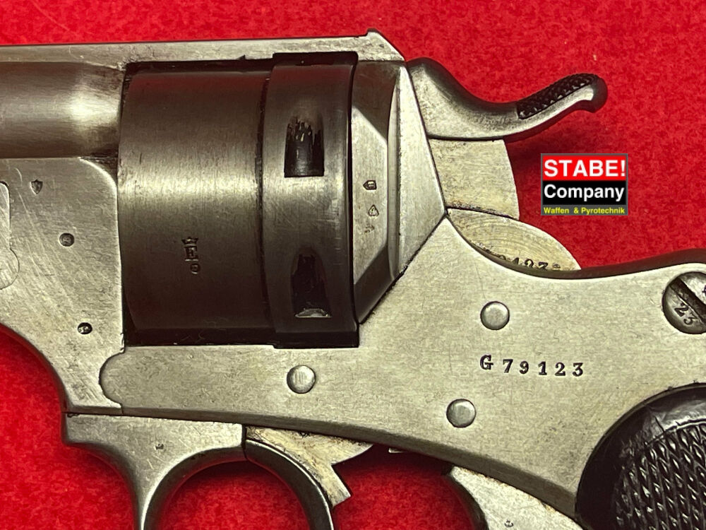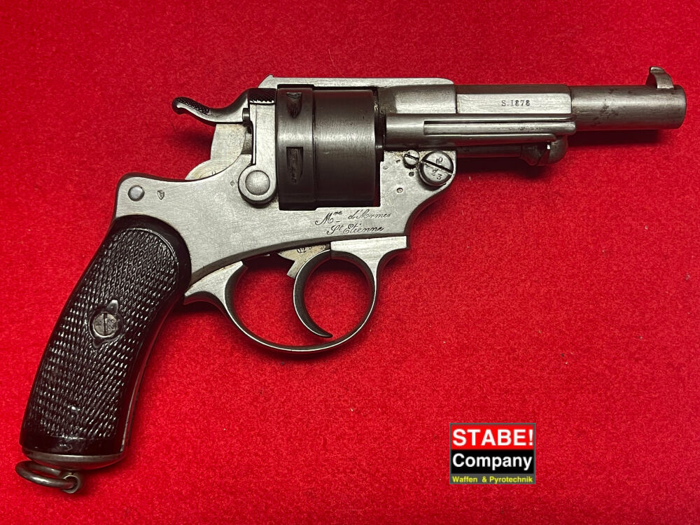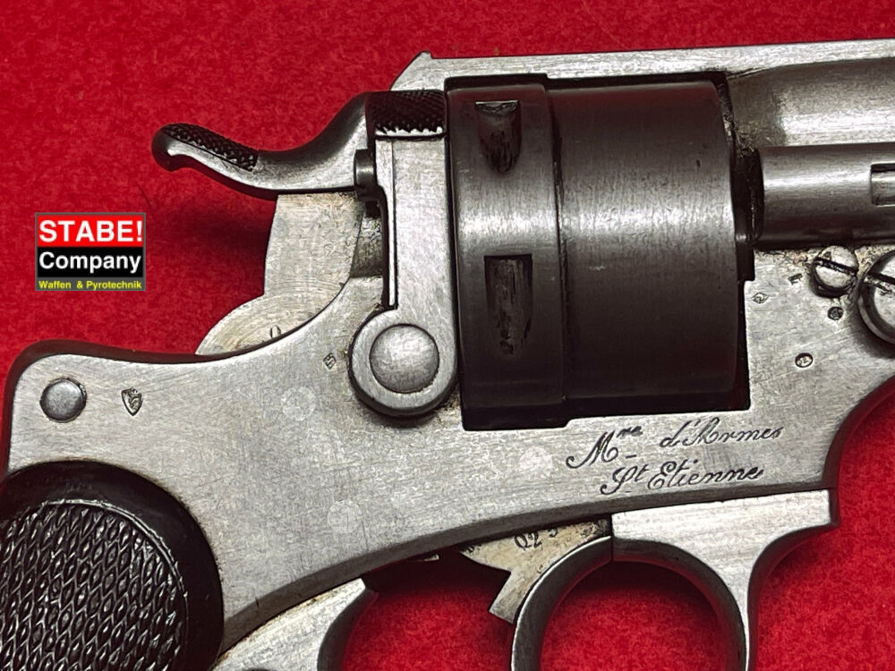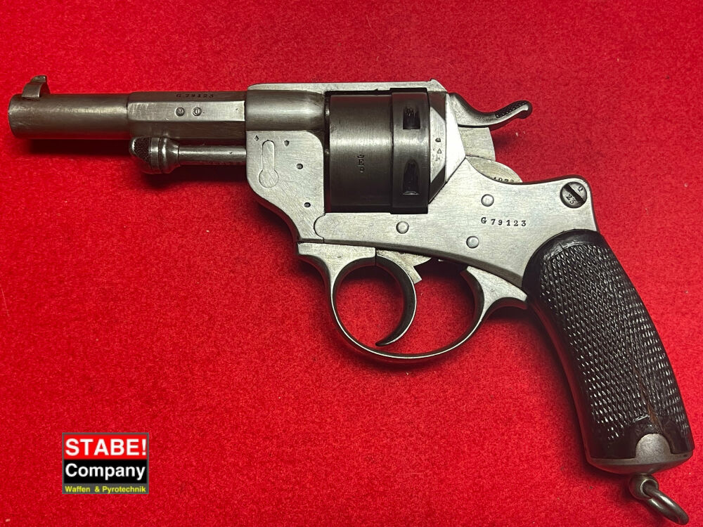 französischer Militärrevolver aus gepflegter Sammlung Nummerngleich Holzgriffschalen(eine Holzgriffschale hat einen leichten Riss) seitliche Ladeklappe feststehende offene Bisierung DA/... ...weiterlesen