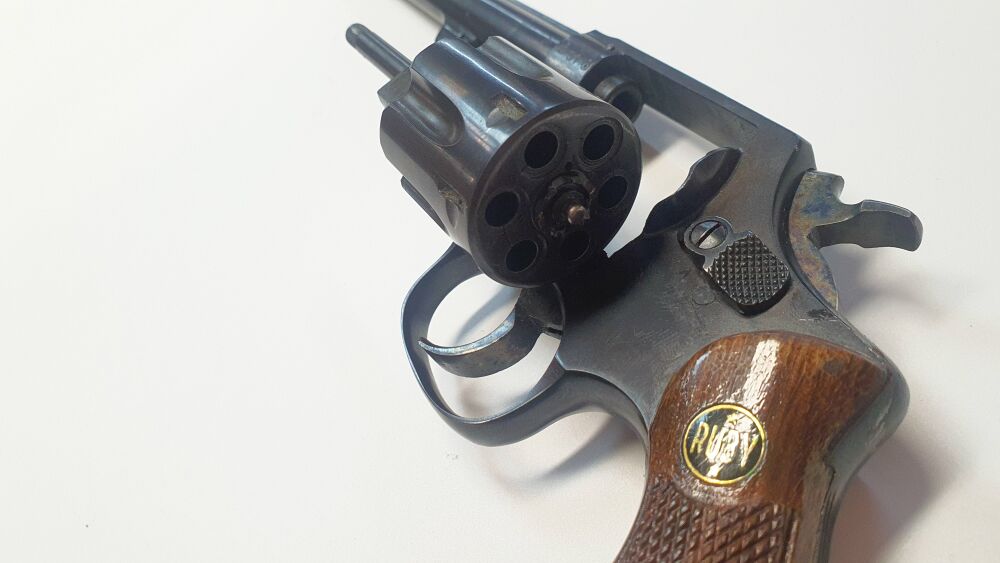 !Gebrauchtwaffe! Revolver Gabilondo Ruby mit Lederholster -.22Lr Dieser spanische "Ruby extra" im Kaliber .22 lr wurde von der Firma Gabilondo hergestellt. Für seinen kleinen Rahme... ...weiterlesen