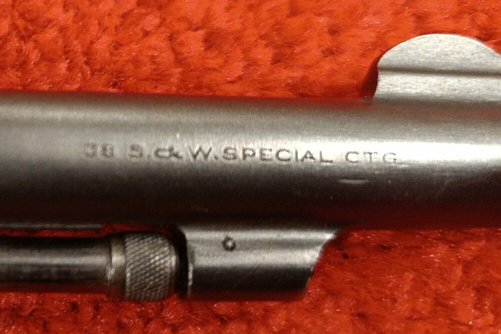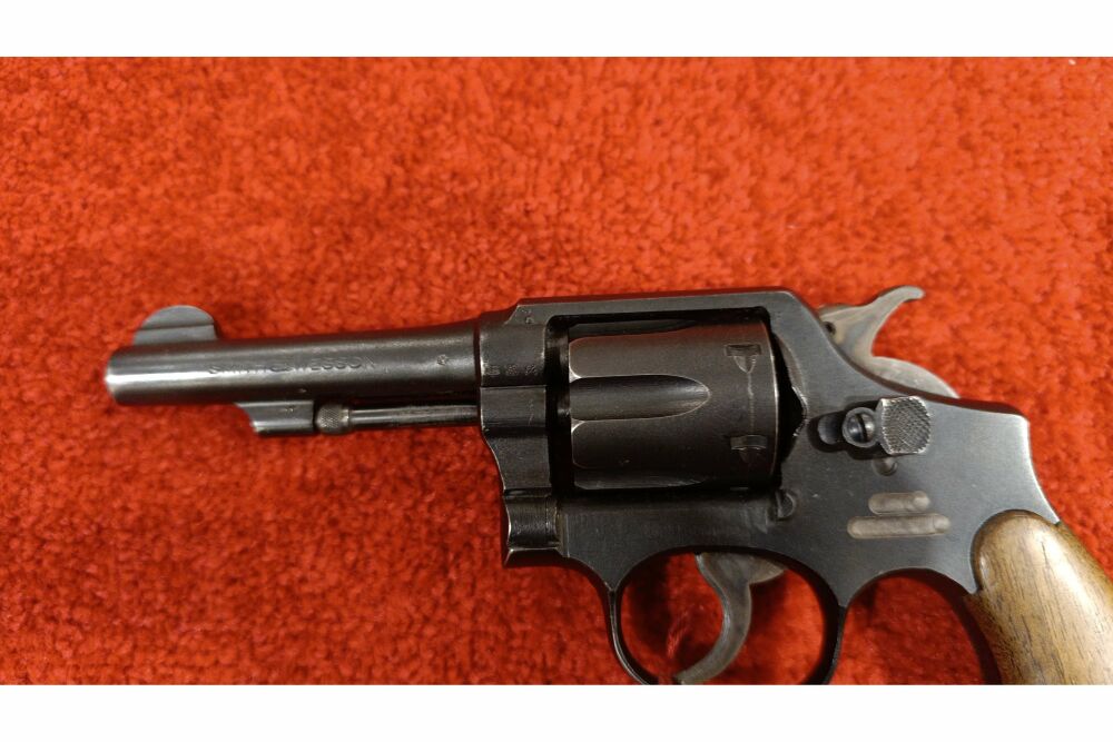 Revolver Smith & Wesson Mod. Military & Police .38Special+ Lauflänge 10cm+ Lauf innen guter Zustand+ Holzgriffschalen + Ausschwenkbare Trommel+ Sechs Schuss Trommel+ Kimme und Korn ...weiterlesen