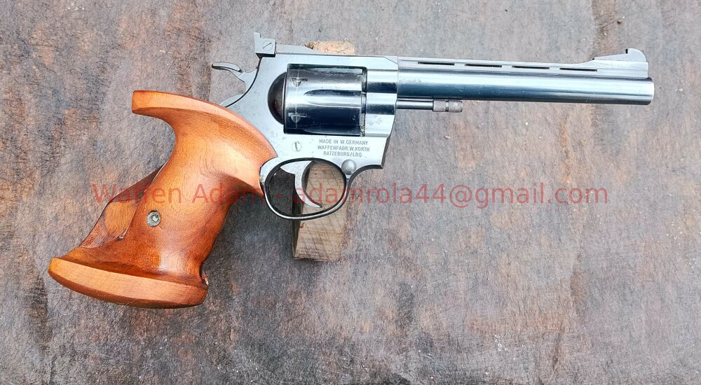 Gebrauchter Sport Revolver Korth, Beschuss Kiel 1966, Technisch sehr guter Zustand, Funktion uneingeschränkt gegeben - jedoch Teilweise Korrosionsspuren am Griffstück, am Ramen unter den Griffschalen teilweise stärkere Närbchenbildung. Griffgröße S-M (Frauenhände) rechts Schützen.