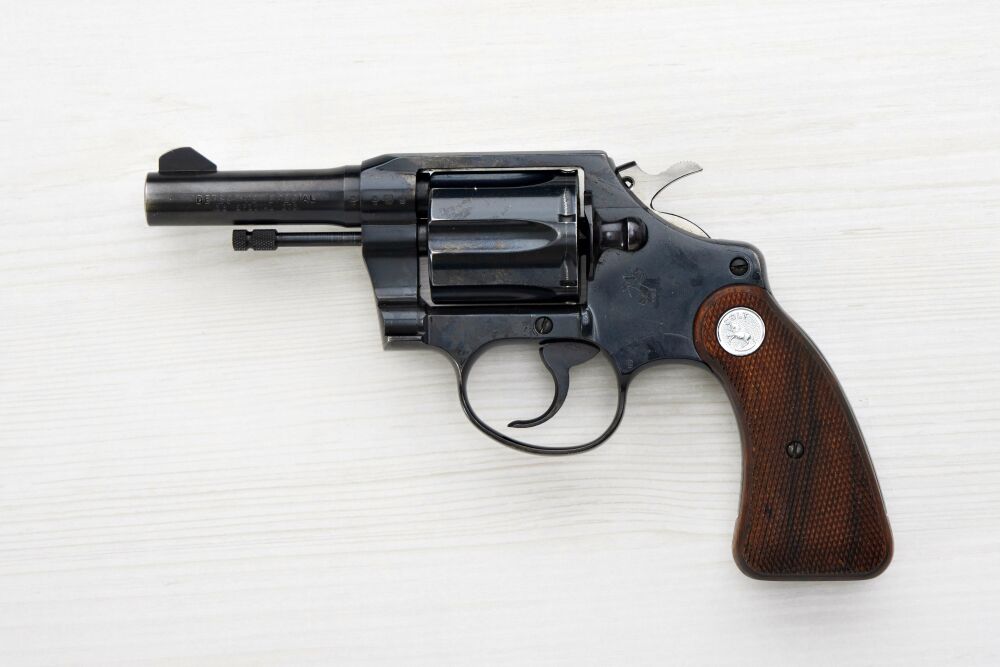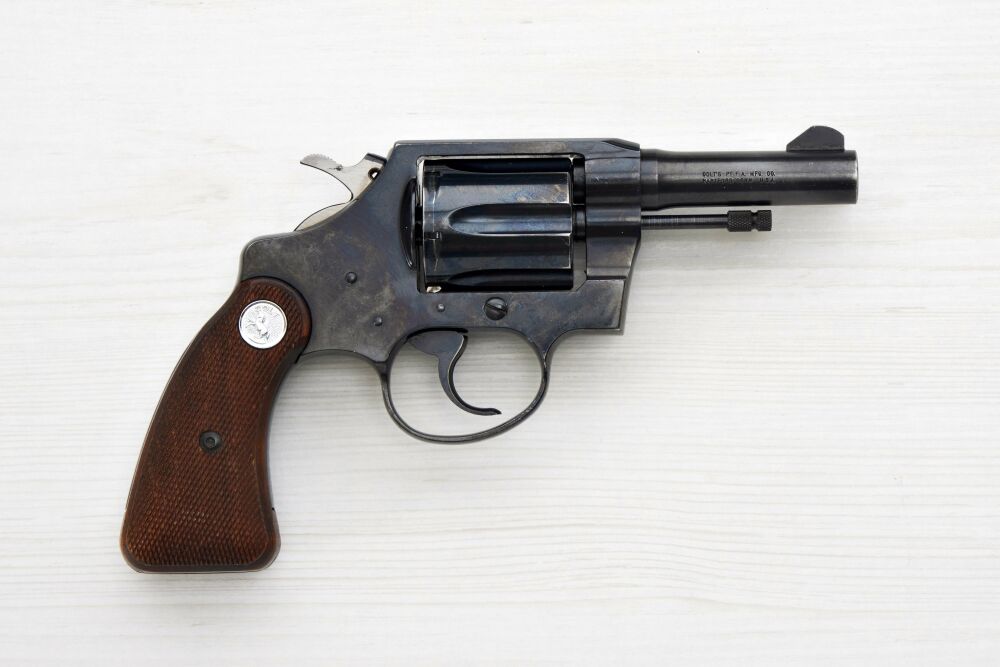 Revolver Colt Detective Special 2,5" im Kaliber .38 Special in neuwertigem Zustand. Am Lauf Modellbezeichnung, Kaliberangabe, Herstelleradresse sowie Beschuss Adler N. Der Rahmen mit Beschuss Adler N des Beschussamtes München aus dem Jahr '68. Colt-Logo und H im Kreis für Importfirma Hoffmann. Rahmeninnenseite mit Seriennummer. Revolver mit Holzgriffschalen mit Fischhaut und Colt-Logo. Erwerbscheinpflichtig!
