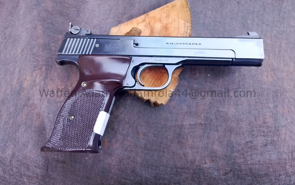Hochwertige Sportpistole aus dem Hause Smith & Wesson, gem. Datenrecherche müsste die Waffe noch aus den 60igern stammen. Die Ganzstahl Waffe S&W, Modell 41 zeichnet sich besonders durch die ... ...weiterlesen
