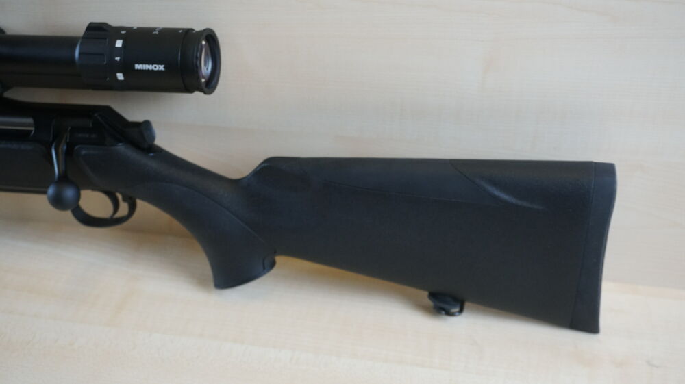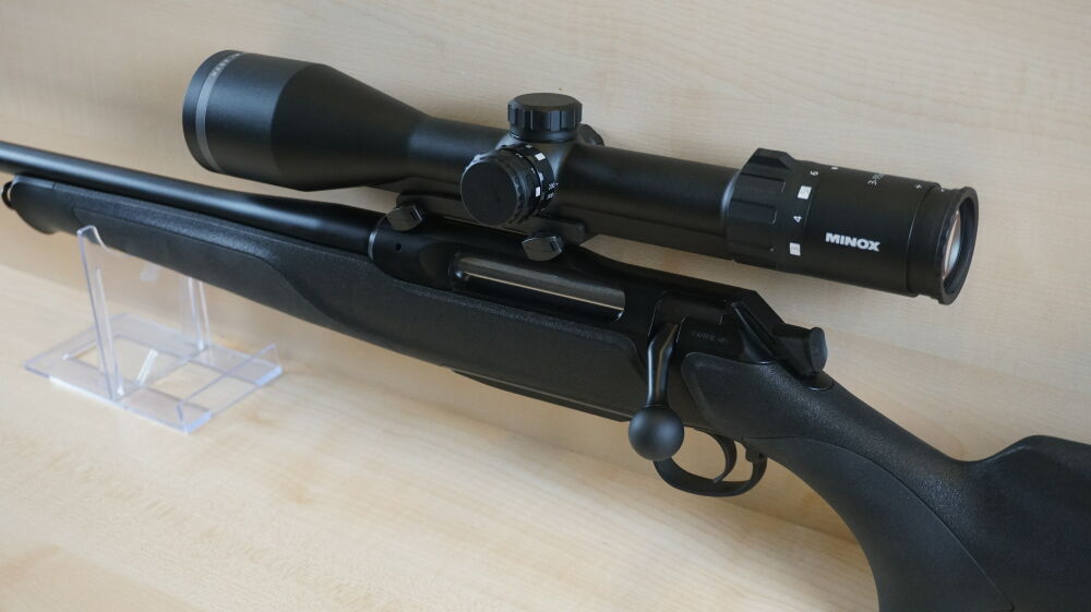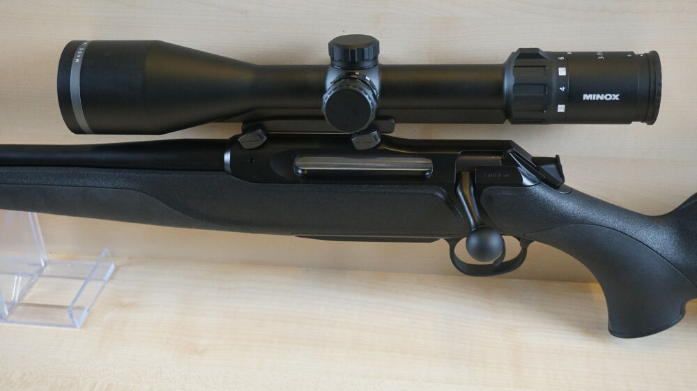 Linkssystem - Repetierbüchse Sauer & Sohn, Modell 505 Ergo Max mit DLC Oberfläche, 51 cm Lauflänge mit Mündungsgewinde, Sauer Sattelmontage, Zielfernrohr Minox, Allrounder 3 - 15 x 56 Leuchtabsehe... ...weiterlesen