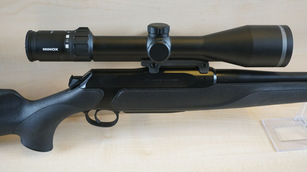 Linkssystem - Repetierbüchse Sauer & Sohn, Modell 505 Ergo Max mit DLC Oberfläche, 51 cm Lauflänge mit Mündungsgewinde, Sauer Sattelmontage, Zielfernrohr Minox, Allrounder 3 - 15 x 56 Leuchtabsehen 4.