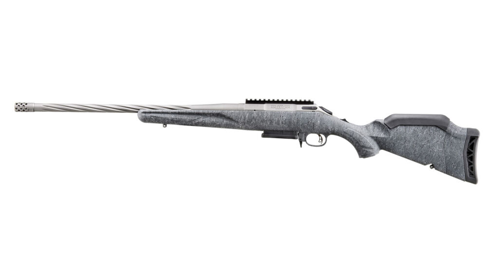 Ruger American® Rifle Generation II - Die Standard-Modelle sind mit einem Gun Metal Gray Cerakote® beschichteten Lauf und einem dunkelgrauen gesprenkelten Schaft ausgestattet. Seine Form und Struktur sorgen für eine hervorragende Griffigkeit und Kontrolle im Einsatz. Der kaltgeschmiedete 20-Zoll-Semi-Weight Lauf ist spiralförmig geflutet und soll so die Balance des Gewehrs verbessern, ohne die Steifigkeit oder Präzision zu beeinträchtigen.