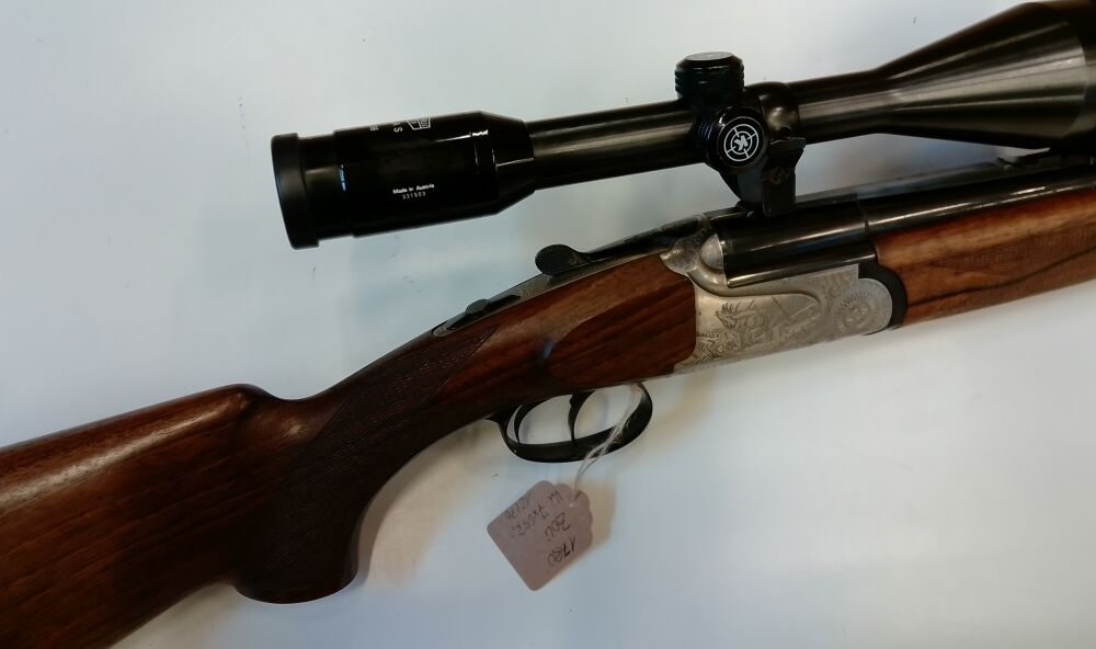 Bockbüchsflinte Zoli Kal. 7x65 R , 12/70 Zielfernrohr Kahles 8x56 / Abs. 4 Schwenkmontage Lauflänge: 65 cm Schaftlänge: 36 cm Zustand: gut, leichte Gebrauchsspuren Artikel... ...weiterlesen