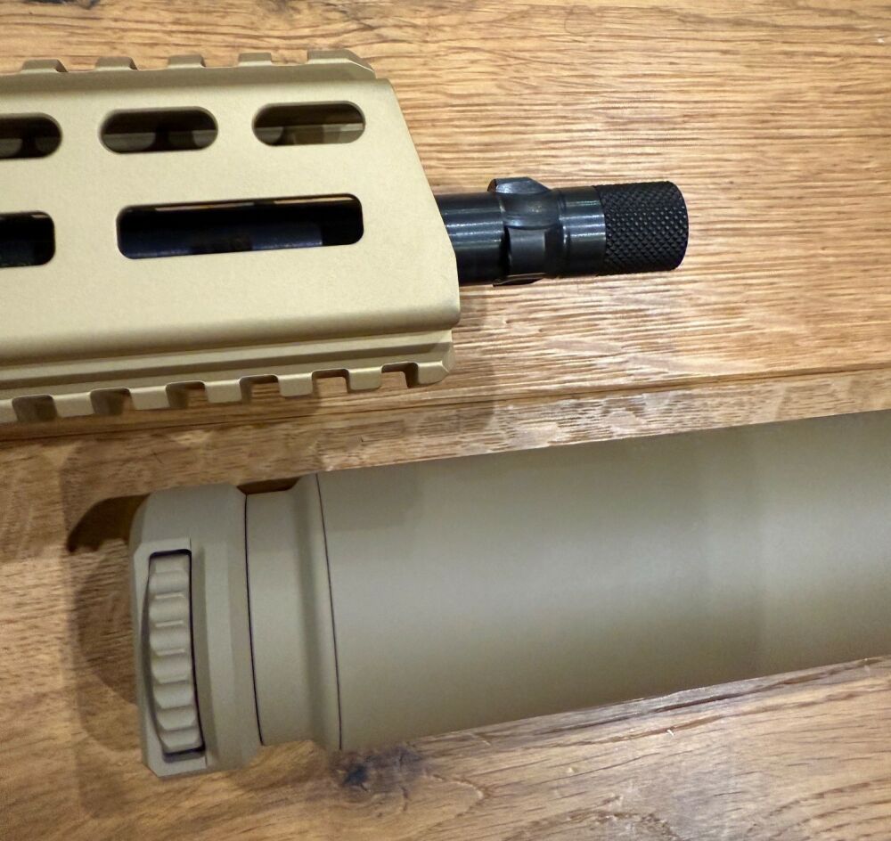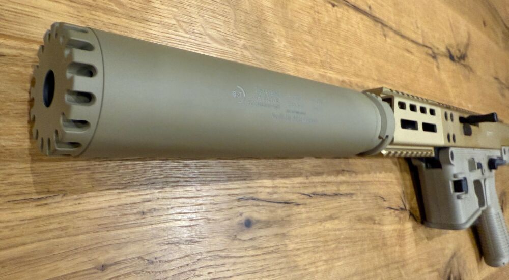 Die Waffe verfügt über ein integriertes NAR, einen leichten Frestschaft und eine 3-Lug-Montagesystem. Den passenden Schalldämpfer in FDE haben wir ebenfalls im Sortiment.
