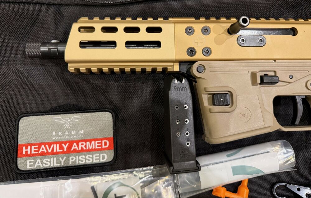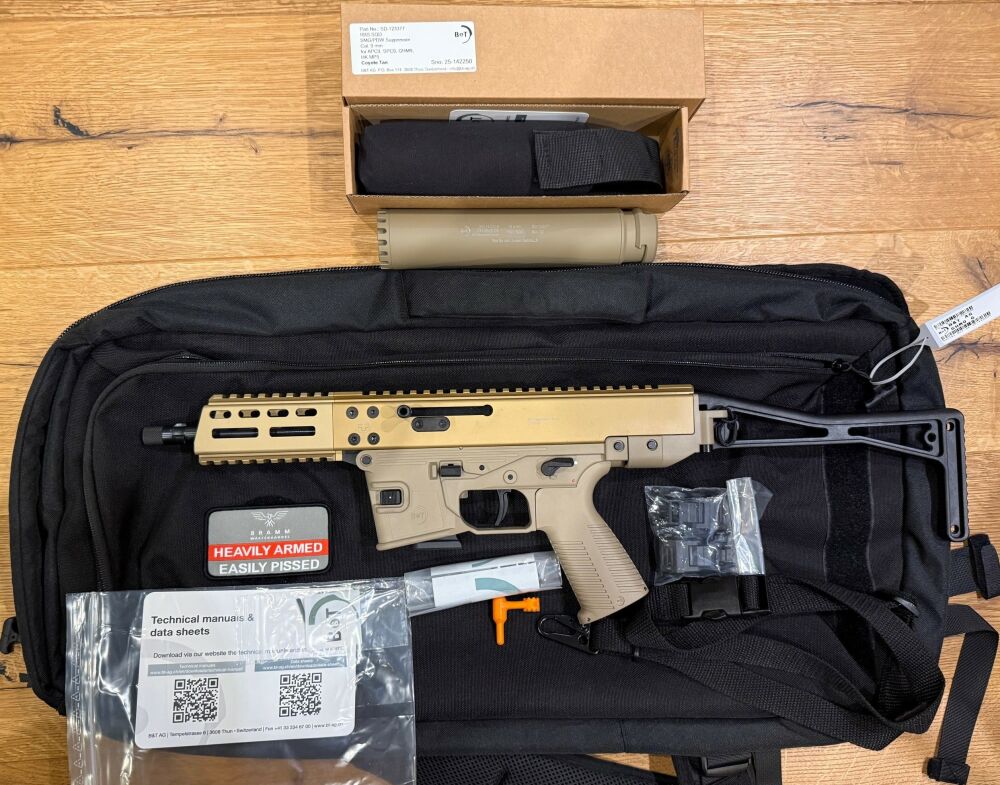 inkl. B&T RBS Schalldämpfer SQD Kal. 9mm Luger TAN im Wert von 650 EUR