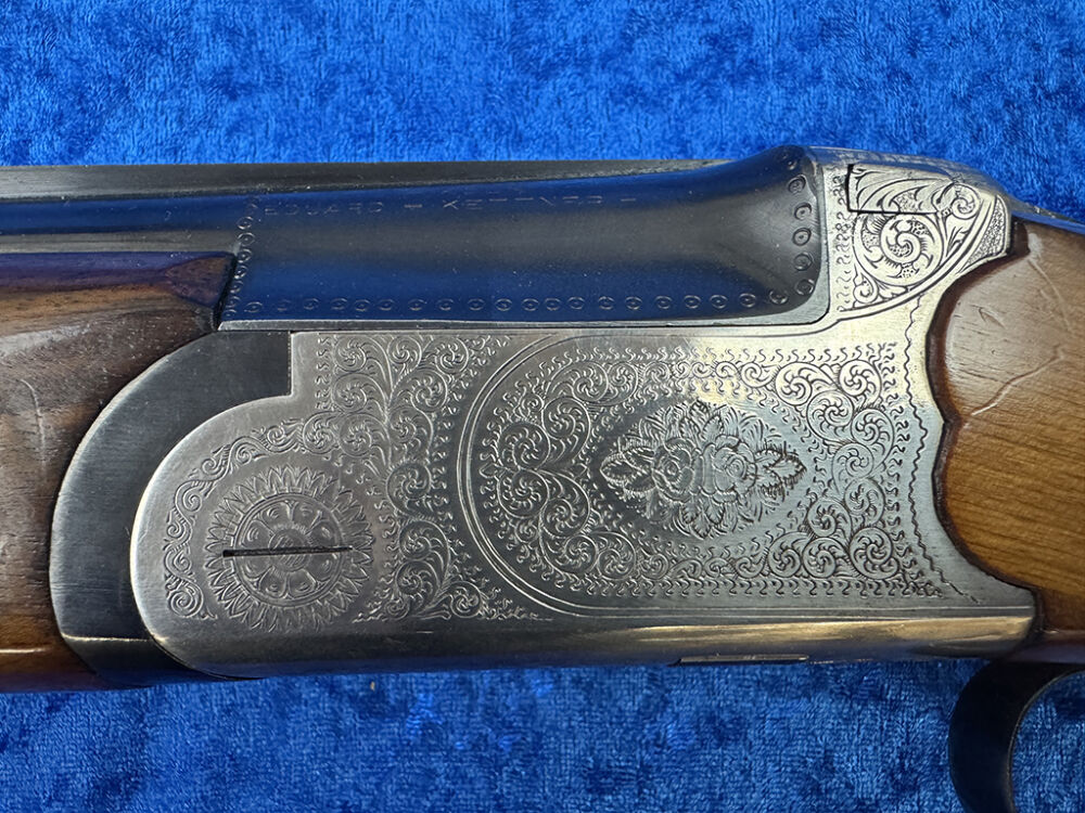 Die Kettner BDF (Bockdoppelflinte) im Kaliber 12/70 ist eine klassische Jagd- und Sportflinte, die von der ehemals renommierten deutschen Firma Kettner vertrieben wurde. Kettner war lange Zeit ein bekannter Name im Bereich der Jagd- und Schießsportausrüstung und bot sowohl hochwertige Eigenmarken als auch importierte Waffen an. Die Kettner BDF im Kaliber 12/70 gilt als robuste und zuverlässige Flinte für Jagd- und Sporteinsätze. Diese Bockdoppeltflinte mit Choke 3/4 - voll ist vielseitig einsetzbar und eignet sich sowohl für Niederwild, Flugwild und die Drückjagd. Ihren Beschuss hat diese Kettner in Gardone (Italien) erhalten.