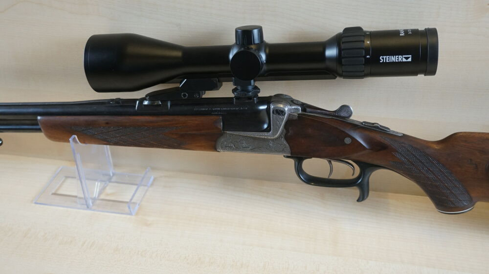Bockbüchsflinte Sauer & Sohn im Kaliber 7 x 65R und 16 / 70 mit Rückstecher im vorderen Abzug, Schwenkmontage und neues Zielfernohr Steiner Ranger 4, 3 - 12 x 56 Leuchtabsehen 4. ...weiterlesen