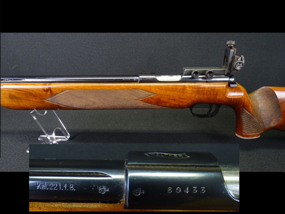 Angeboten wird eine Walther Mod. UIT Match Rechtssystem mit linkem Schaft. Waffenart: Langwaffe Lauflänge: ca. 62cm Schaftlänge: ca. 35cm Für w... ...weiterlesen