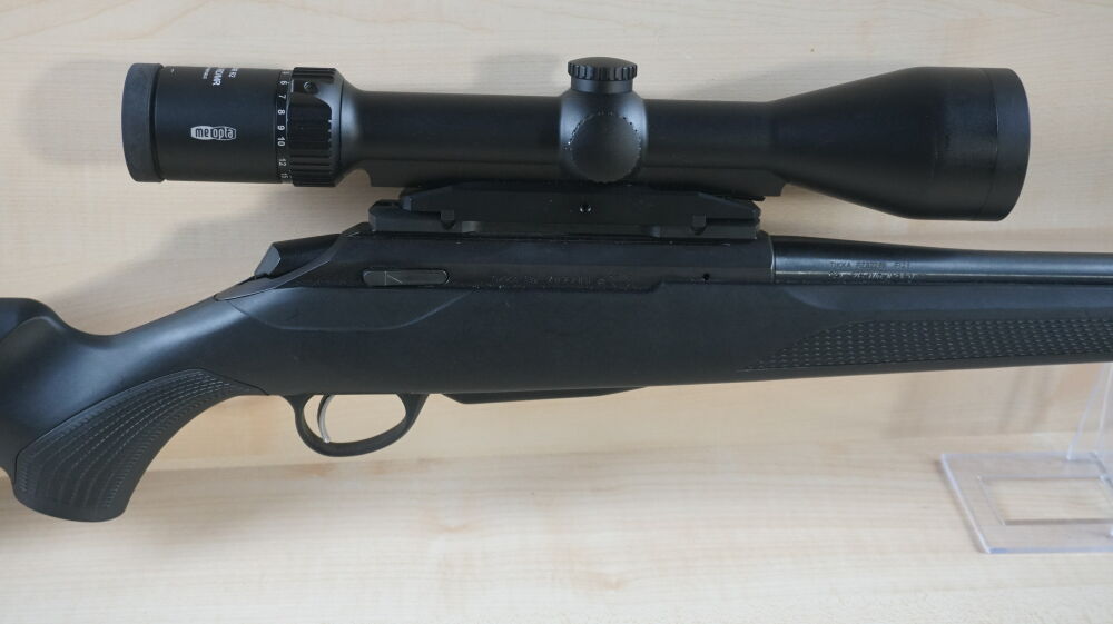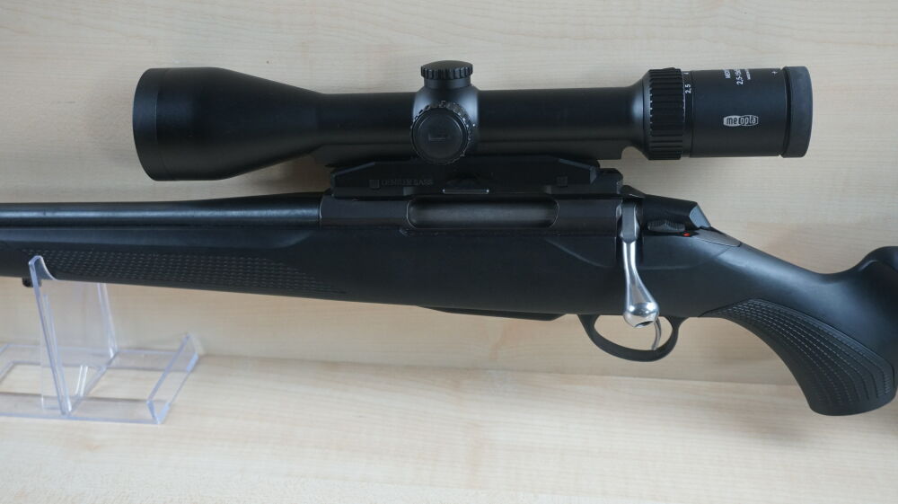 Linkssystem Repetierbüchse Tikka T3x im Kaliber 308 Win. mit Schaftrückenverstellung, Dentler Montage, Zielfernrohr Meopta Meostar R2, 2,5 - 15 x 56 Leuchtabsehen 4 und Schalldämpfer A-Tec, Optima 50 ...weiterlesen