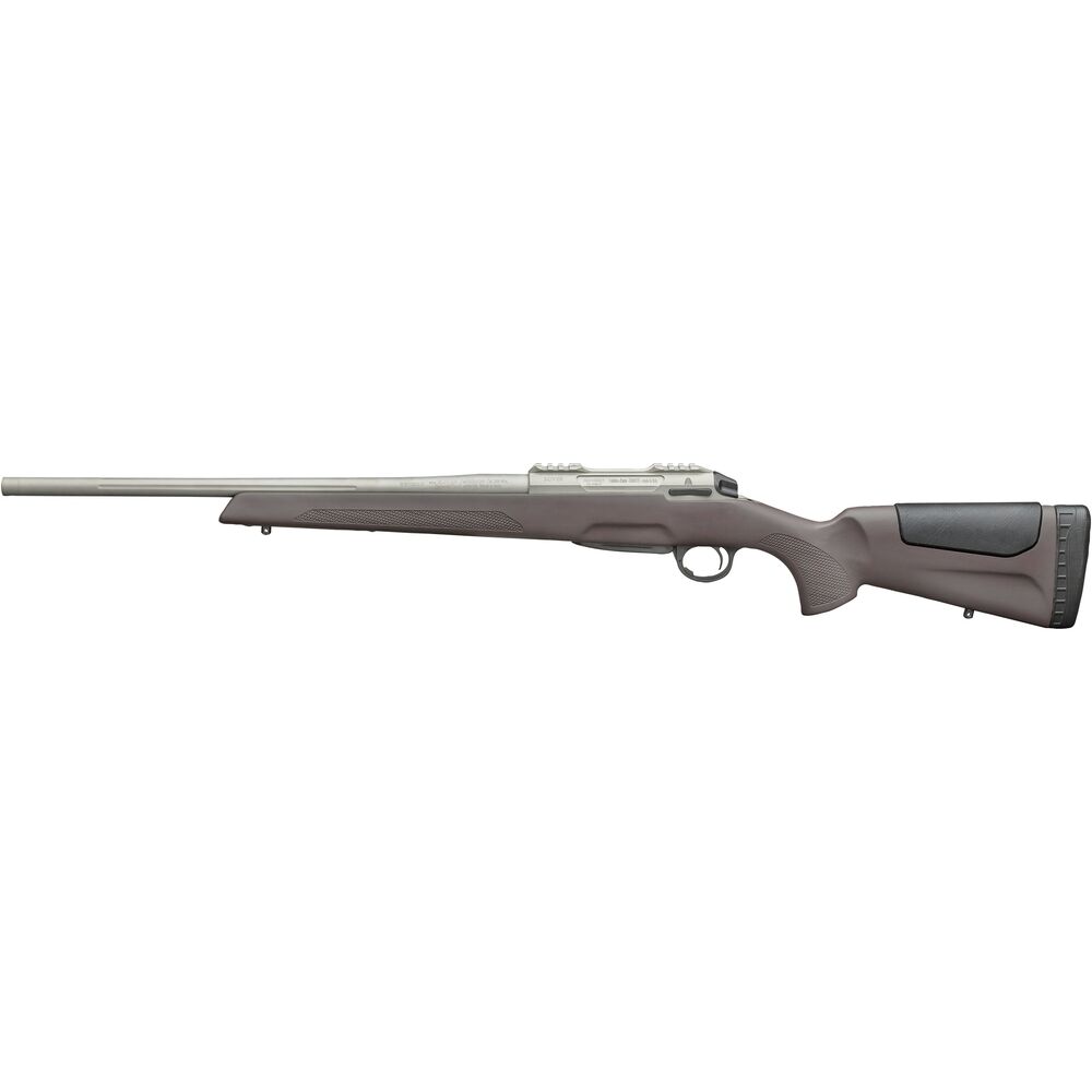 Repetierbüchse Rover G2 Pathfinder. Stabiler Kunststoffschaft mit grauem Soft-Touch-Finish, der Robustheit und Leichtigkeit mit verbesserter Ergonomie kombiniert und in einem weichen Rückstoßpolster endet. Flächenbündige abnehmbare Wangenauflage, Vorderschaft mit Mehrzweck-Stahlplatte für die Montage von Zweibeinen oder anderem Zubehör.