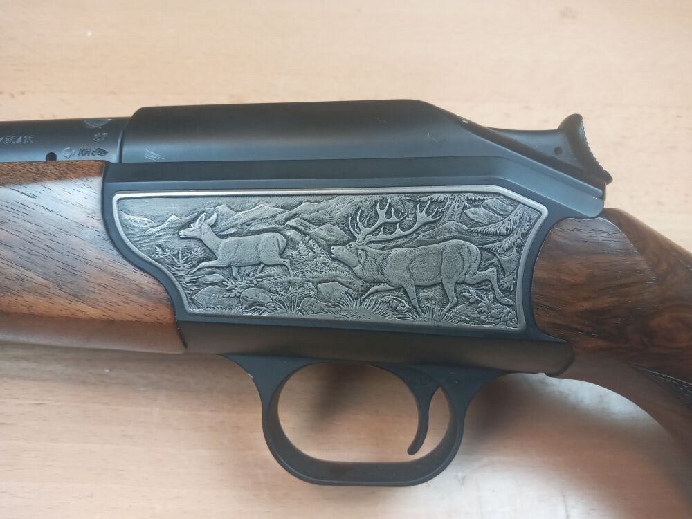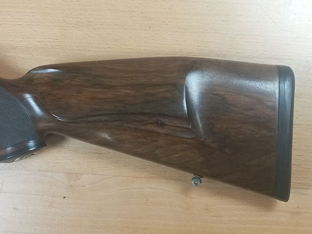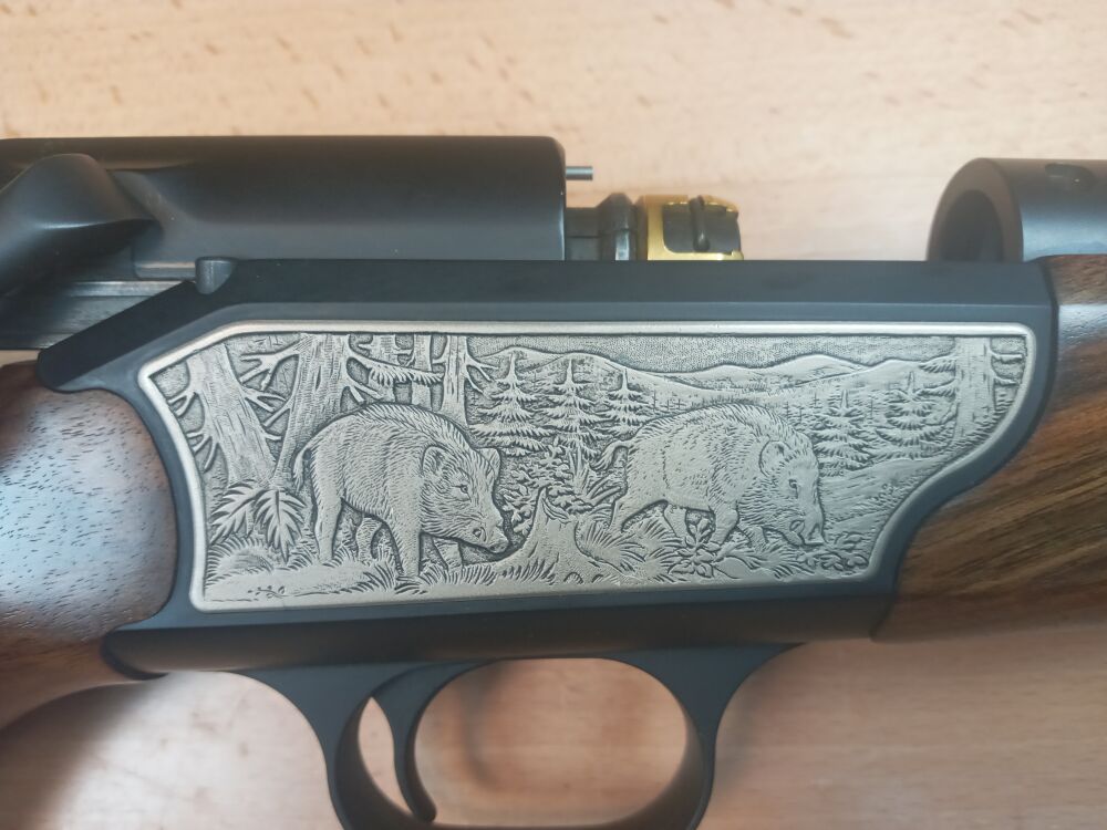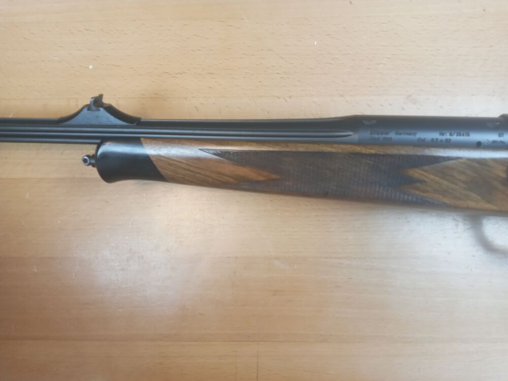 Repetierbüchse Blaser R 93 Kaliber 9,3x62 Lauflänge 520mm kannelierter Lauf Schaftlänge 365mm(Abzug - Mitte Schaftkappe) Gesamtlänge xxx mm gravierte Seitenplatten Klasse Schaftholz Feinabz... ...weiterlesen