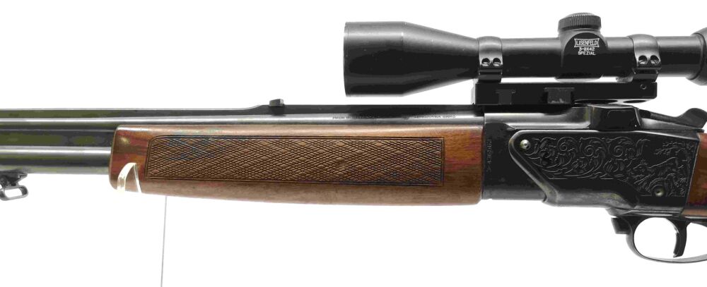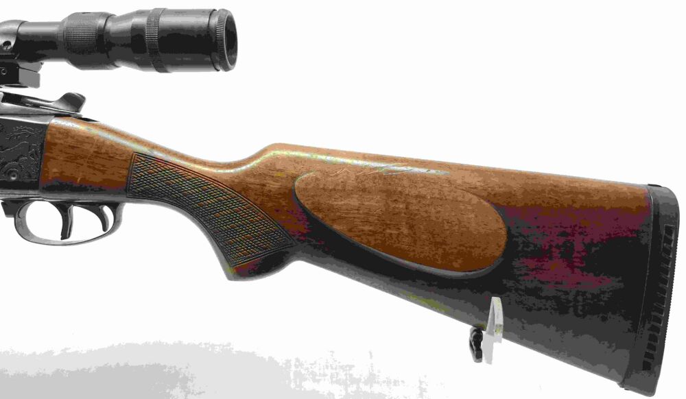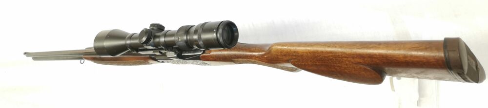 N3298 Brünner Waffenwerke - ZH 304 - Note 3 - beliebte tschechische Bockbüchse, robust, mit ZF Lisenfeld ohne Leuchtpunkt, Aufschubmontage, dunkles Holz, ventilierte Gummischaftkappe, Flintenlauf unten darüber der Kugellauf, Gebrauchsspuren durchaus optisch sichtbar, technisch einwandfrei, keine Beschädigungen, verziertes System mit Jagdmotiven, Sicherung am Abzugsbügel intgeriert, kein Stecher dafür Dirketabzug ohne Vorweg, mit Riemenbügelösen *** EWB-pflichtig ***
